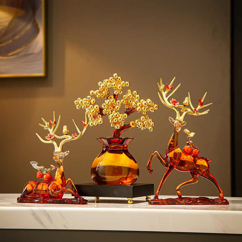 琉璃发财树招财摆件客厅玄关办公室创意摇钱树家居乔迁开业装饰品