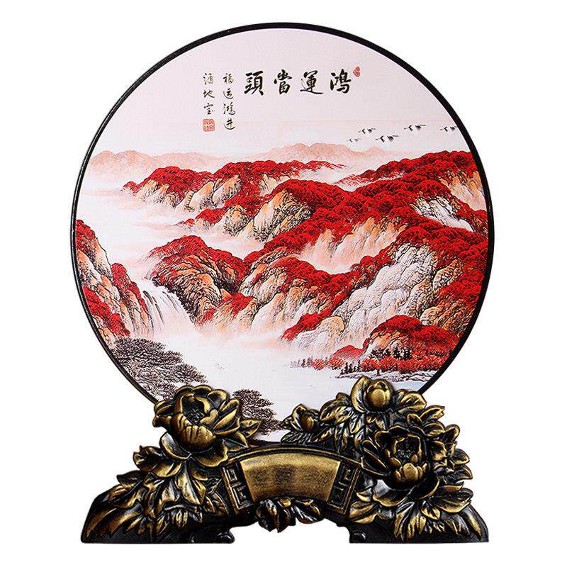 高山流水生财风生水起摆件国风国画 画客厅电视柜新中式博古架装