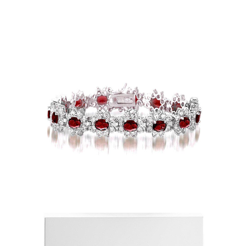 自营 GENEVIVE 纯银红宝石立方氧化锆手链 - 红色 美国奥莱直发