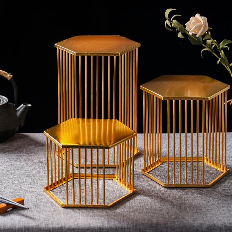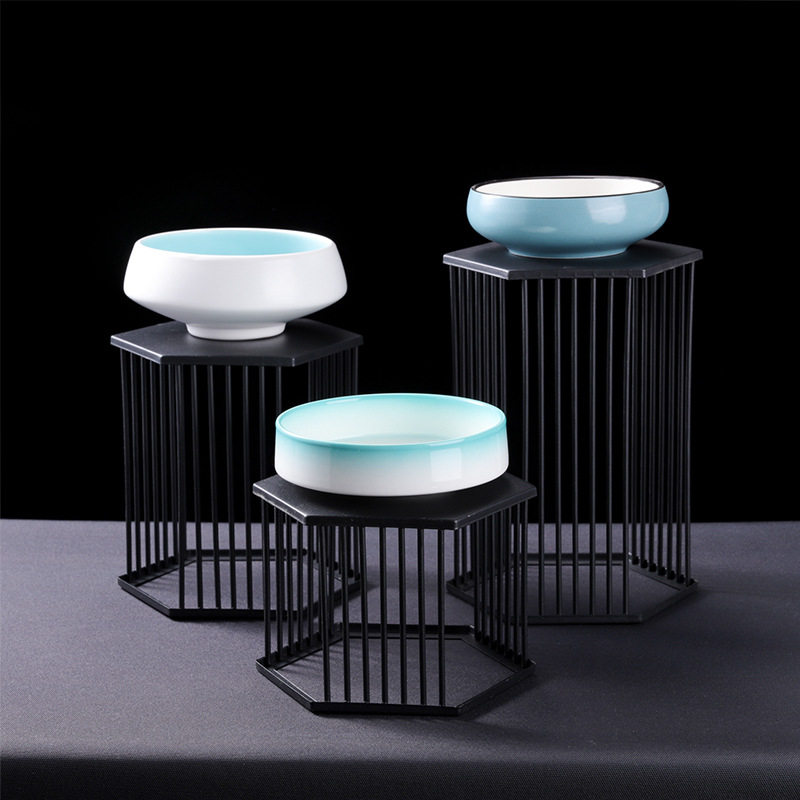 六边形铁艺架创意餐具新中式高脚明档摆台凉菜展示盘特色陶瓷碗碟