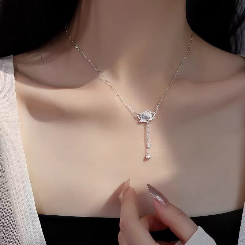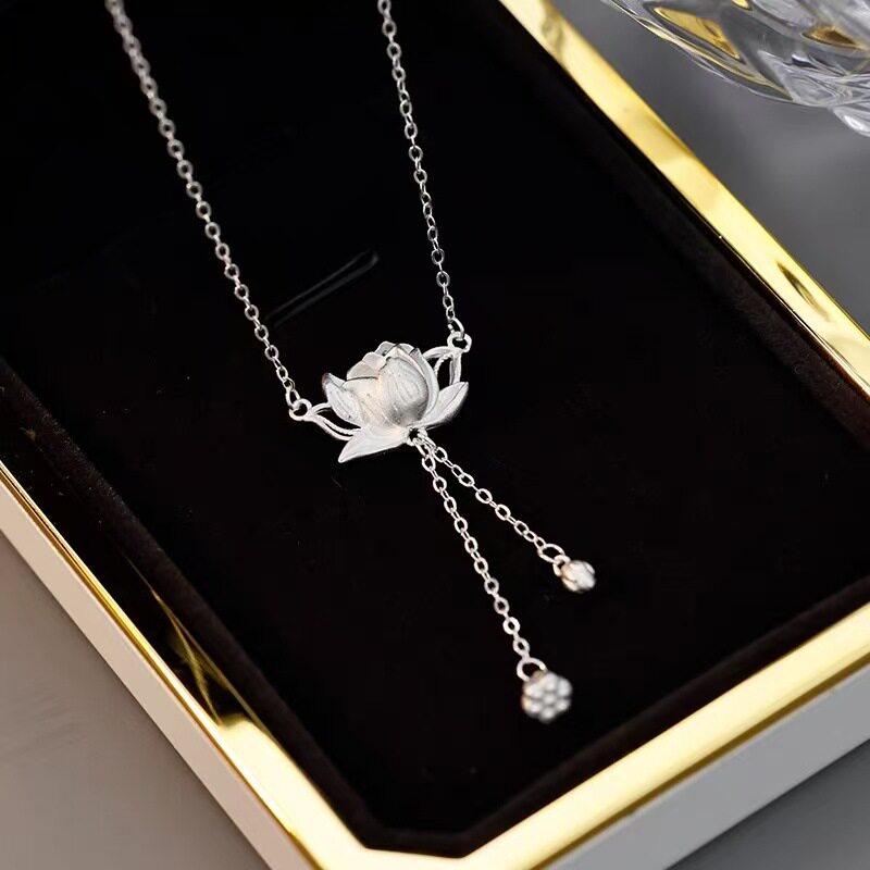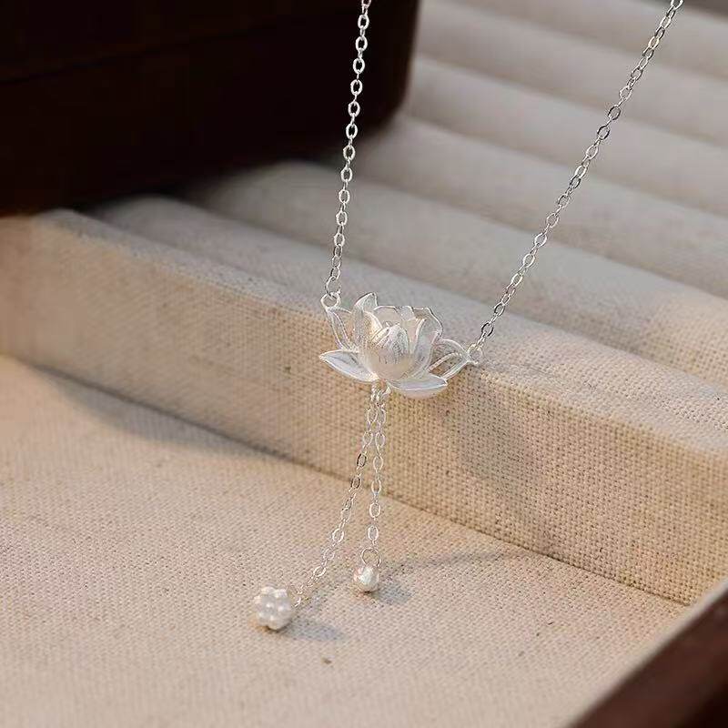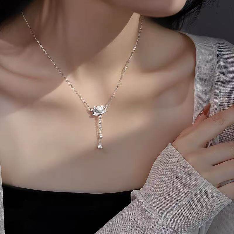 925纯银莲花项链女2025新款爆款吊坠新中式锁骨链足银颈链闺蜜