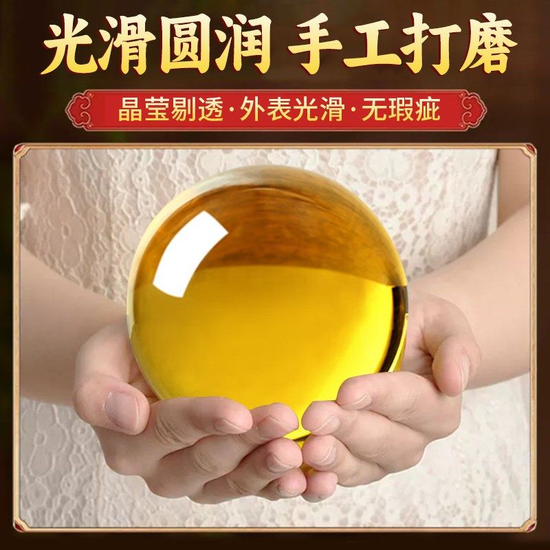 黄色水晶球摆件绿粉玻璃球底座可旋转玄关客厅装饰桌面朋友办公室