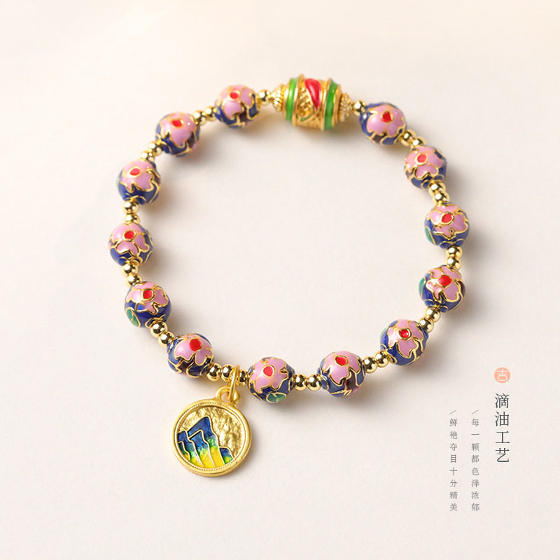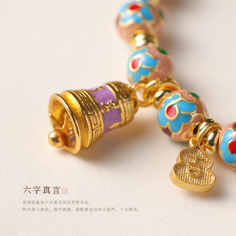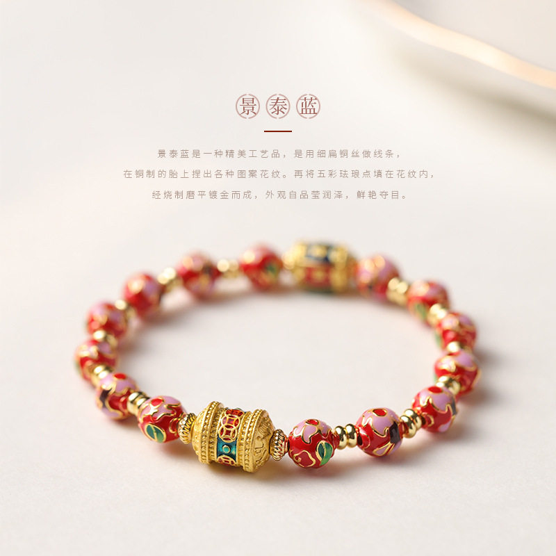 国风景泰蓝掐丝滴油珐琅珠单圈北京宫廷风古法手串招财沙金手链