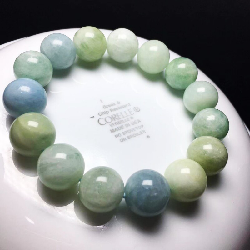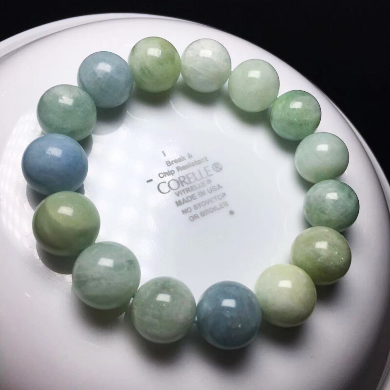 天然水晶手链 绿柱石手串 berylite 摩根石 海蓝宝 浅蓝色系 圆珠