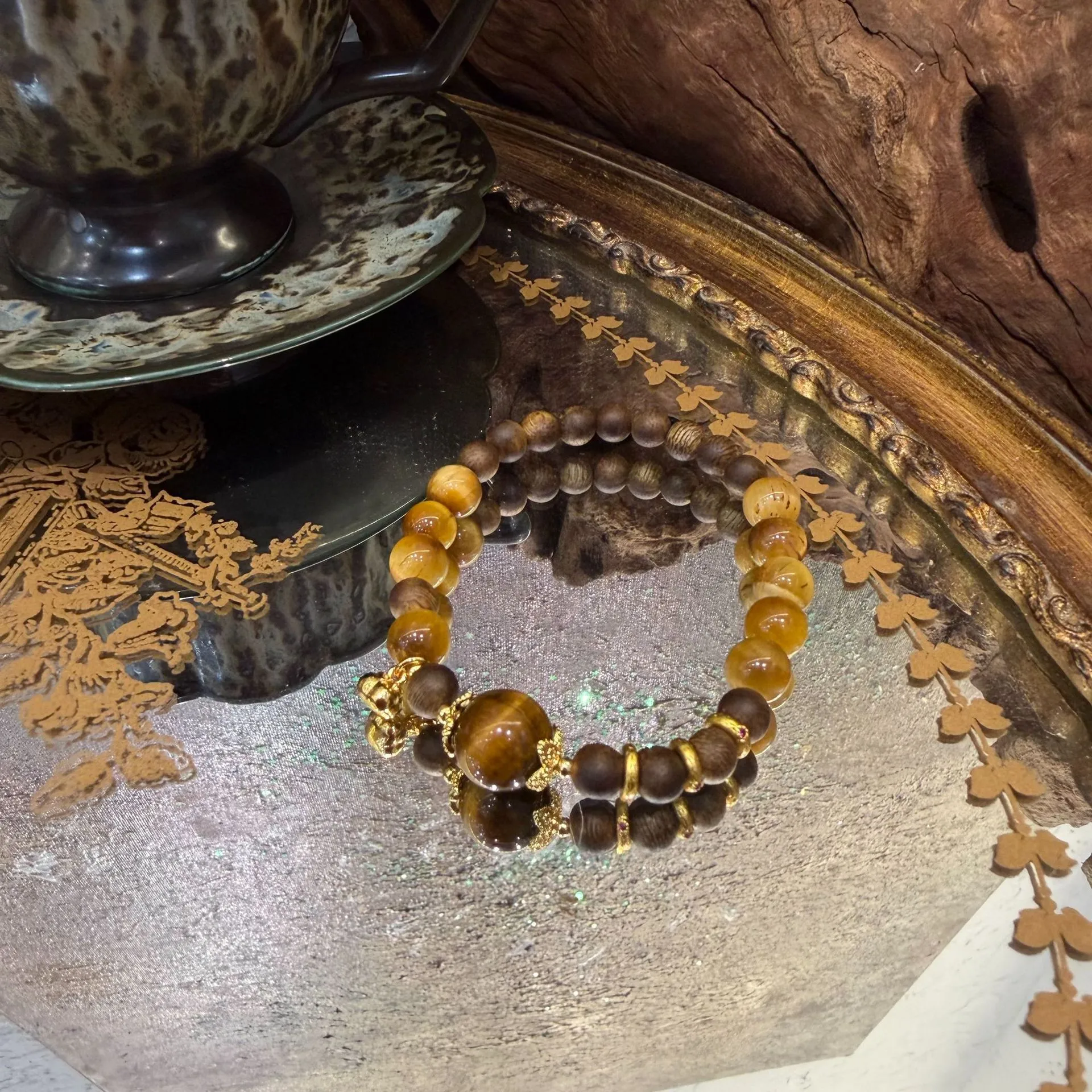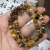 新年招财虎眼石金虎眼沉香木珠手串 小柿子吊坠金黄色手串