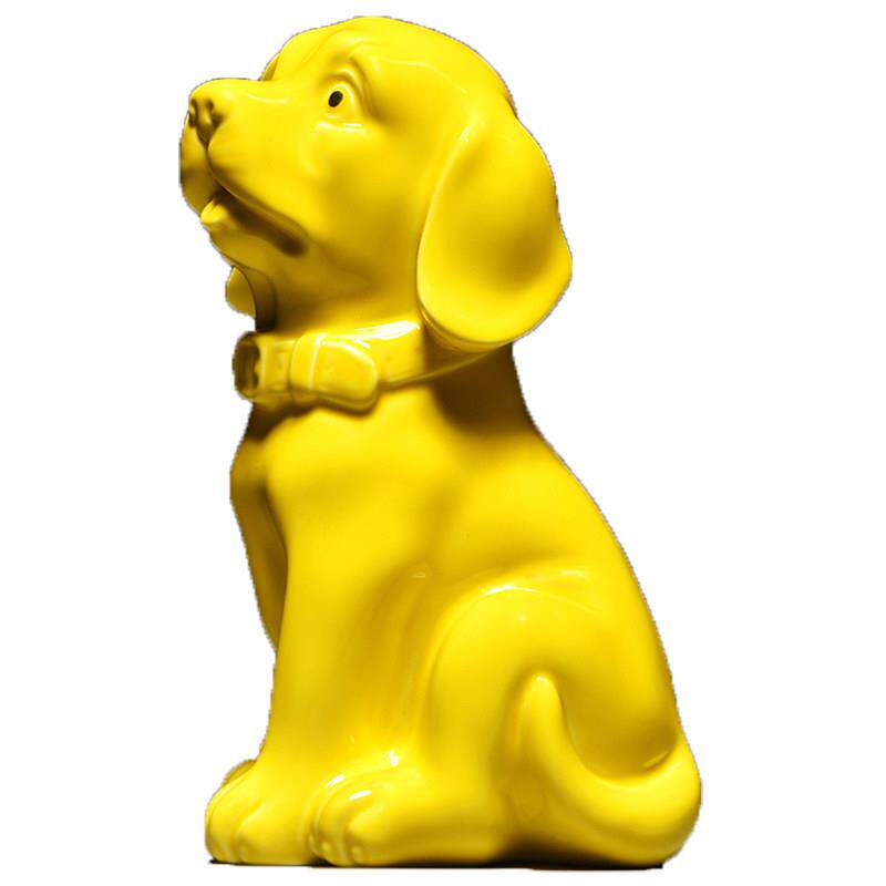 黄色陶瓷狗摆件可爱十二生肖小狗工艺旺财客厅家居房屋补角装饰品
