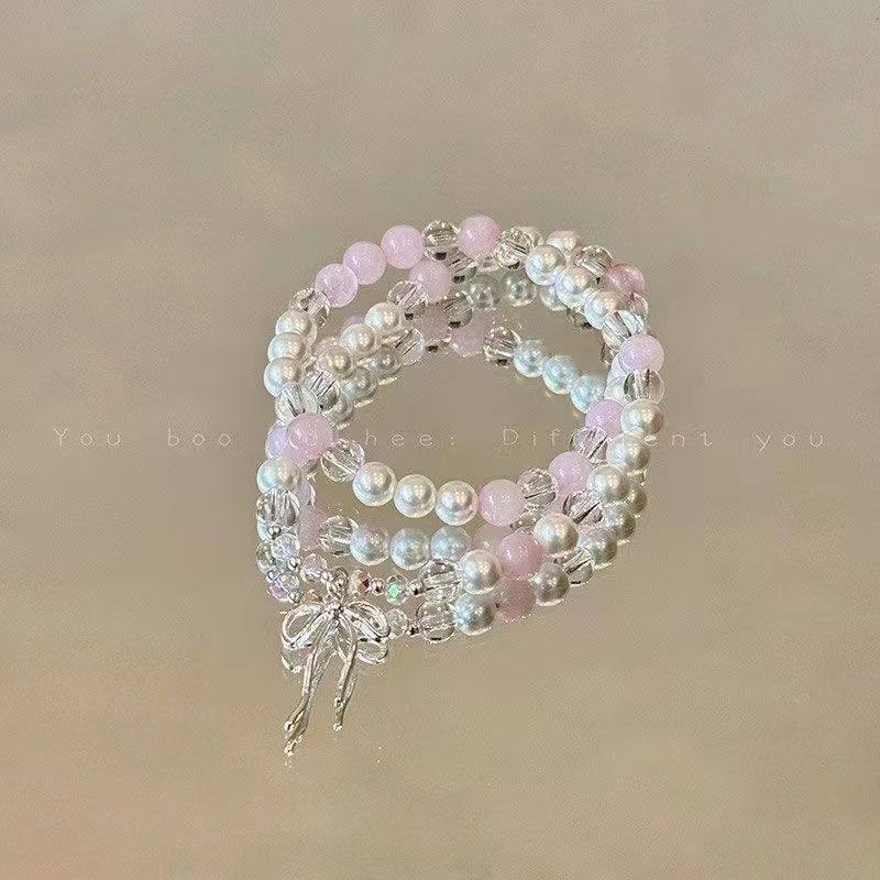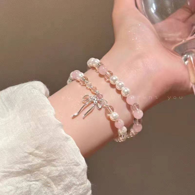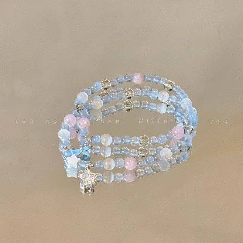 海蓝色蝴蝶结串珠手链女森系甜美星星手串小众设计
