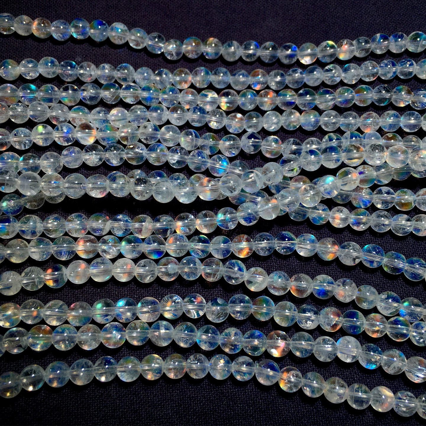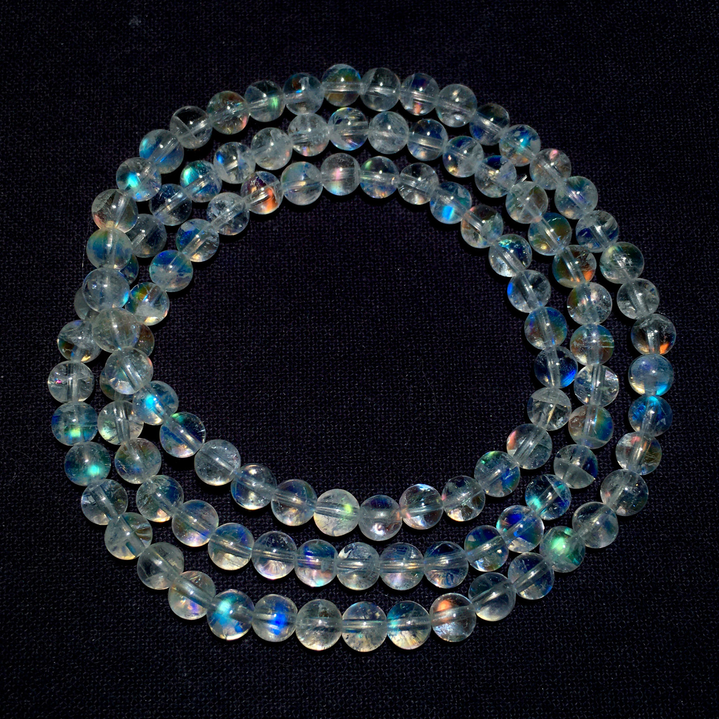 天然冰种彩光马岛月光石三圈手链彩月光石玻璃体水晶手串礼物男女