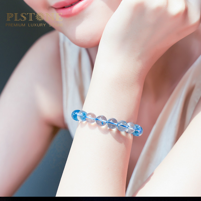 PLSTONE普琳丝天然尼泊尔伦敦蓝帝王瑞士蓝色托帕石手链手串女男