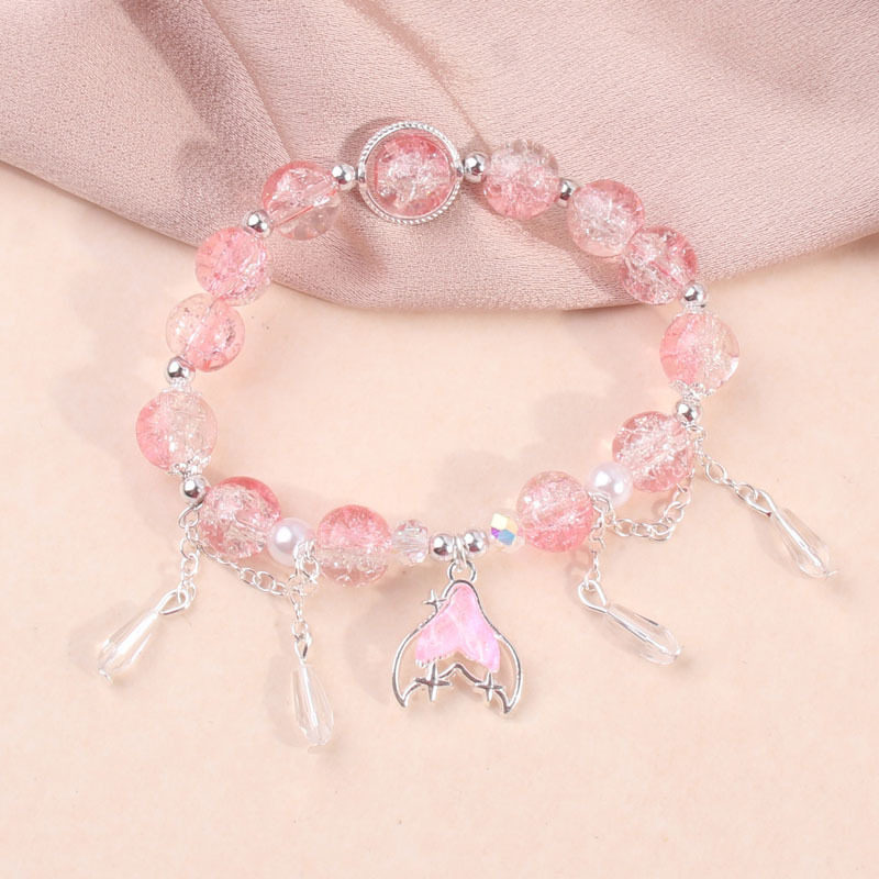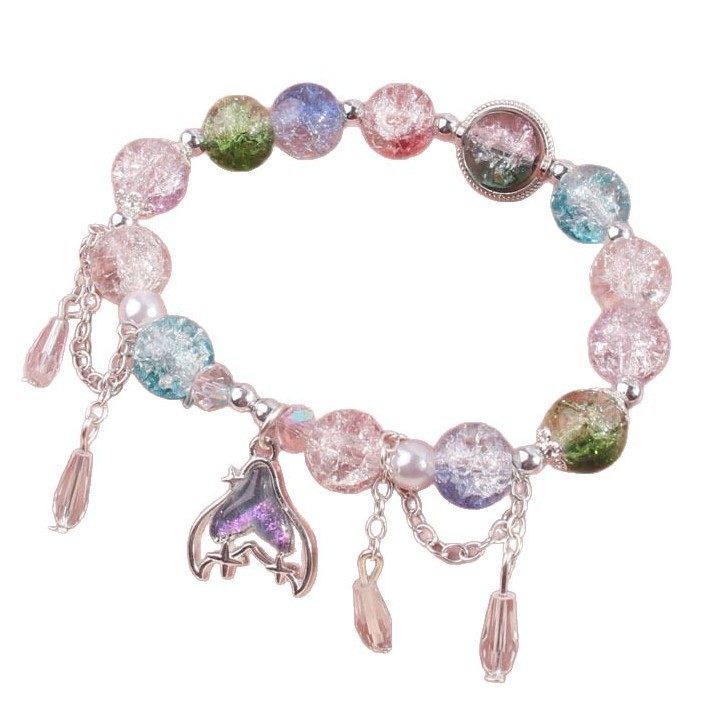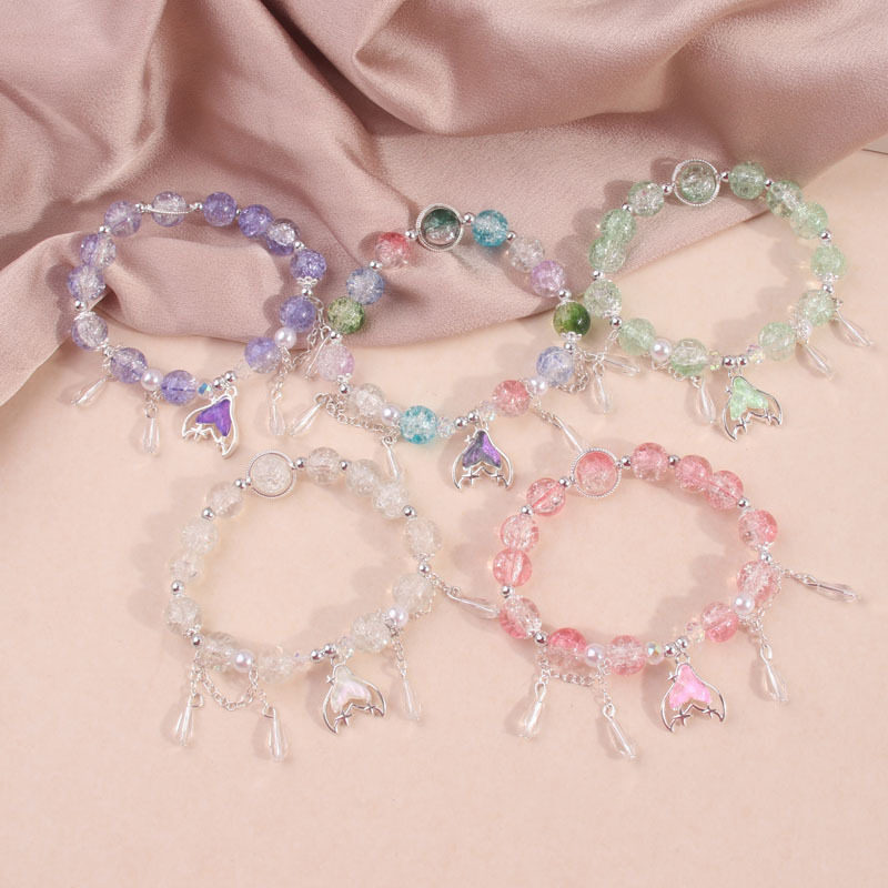 女生琉璃国风爆花晶手链女复古国风鱼尾渐变珠子七彩学生手串手链