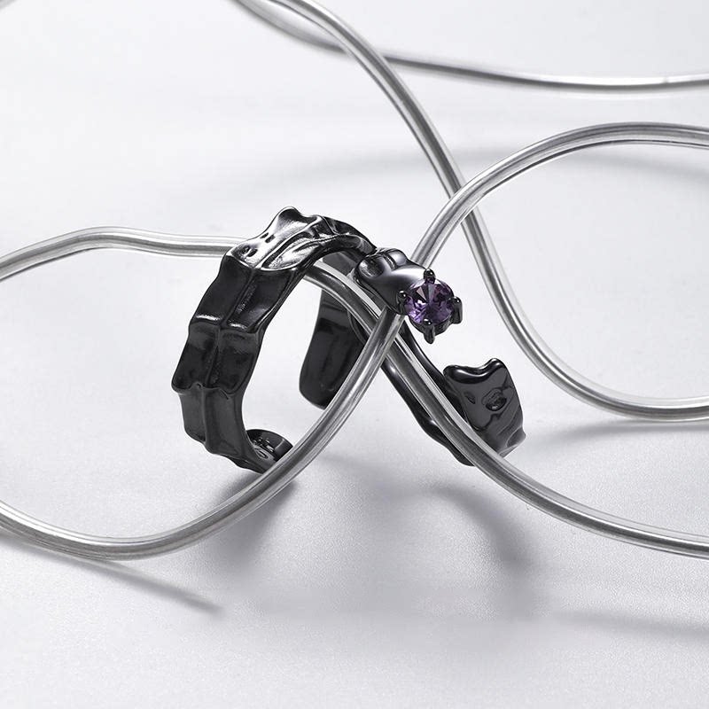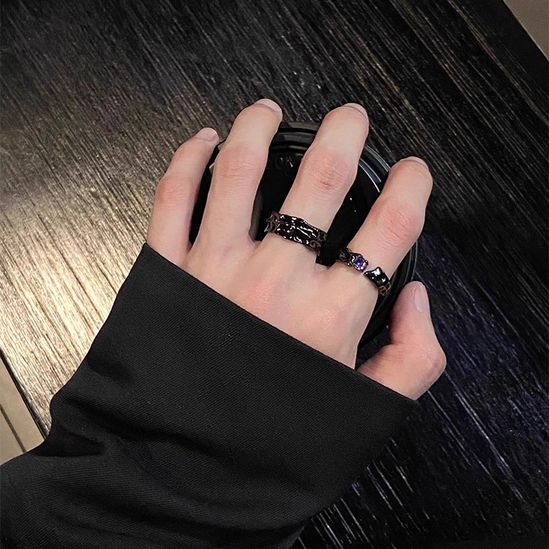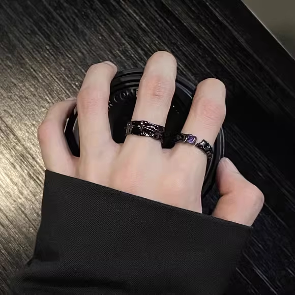 黑色之恋情侣戒指男女一对款ins小众高级冷淡风肌理镶钻开口指环