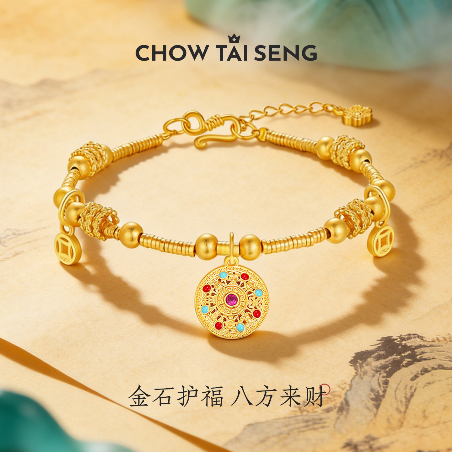 周大生八宝呈祥手链女款新中式高级感S925纯银饰送女友母亲节礼物