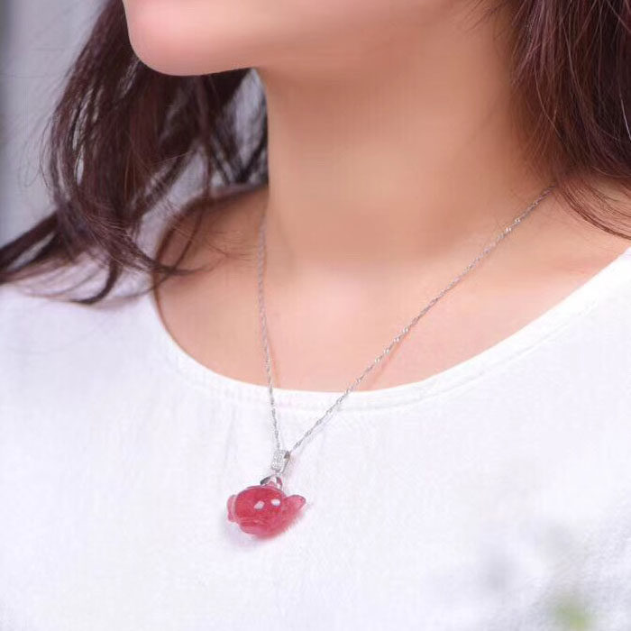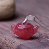 天然草莓晶茶壶吊坠 草莓晶把把胡项坠 麻将把把壶挂坠