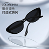 欧美风三角猫眼墨镜防紫外线女款高级感黑色复古美式太阳眼镜防晒