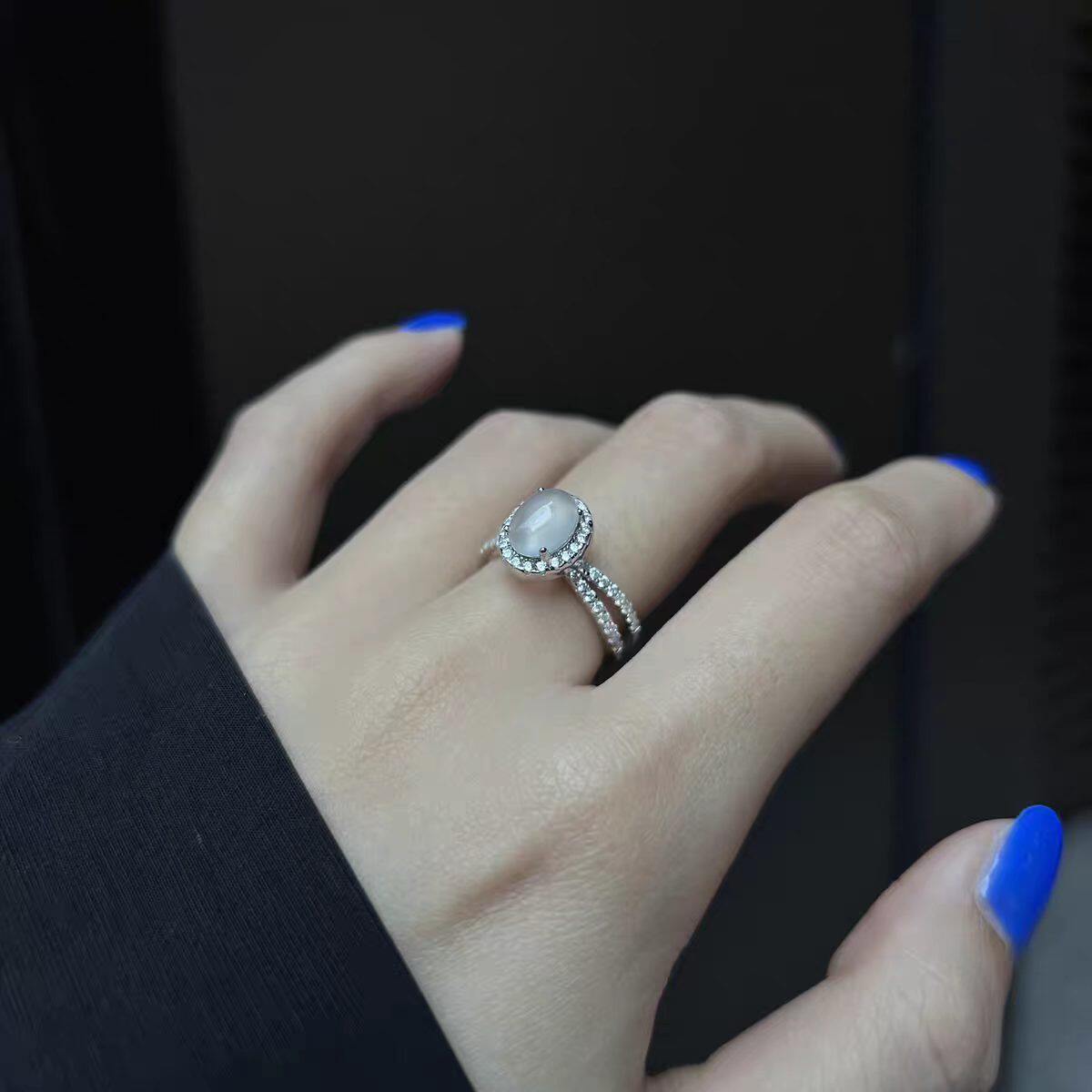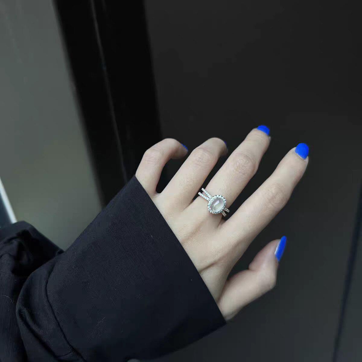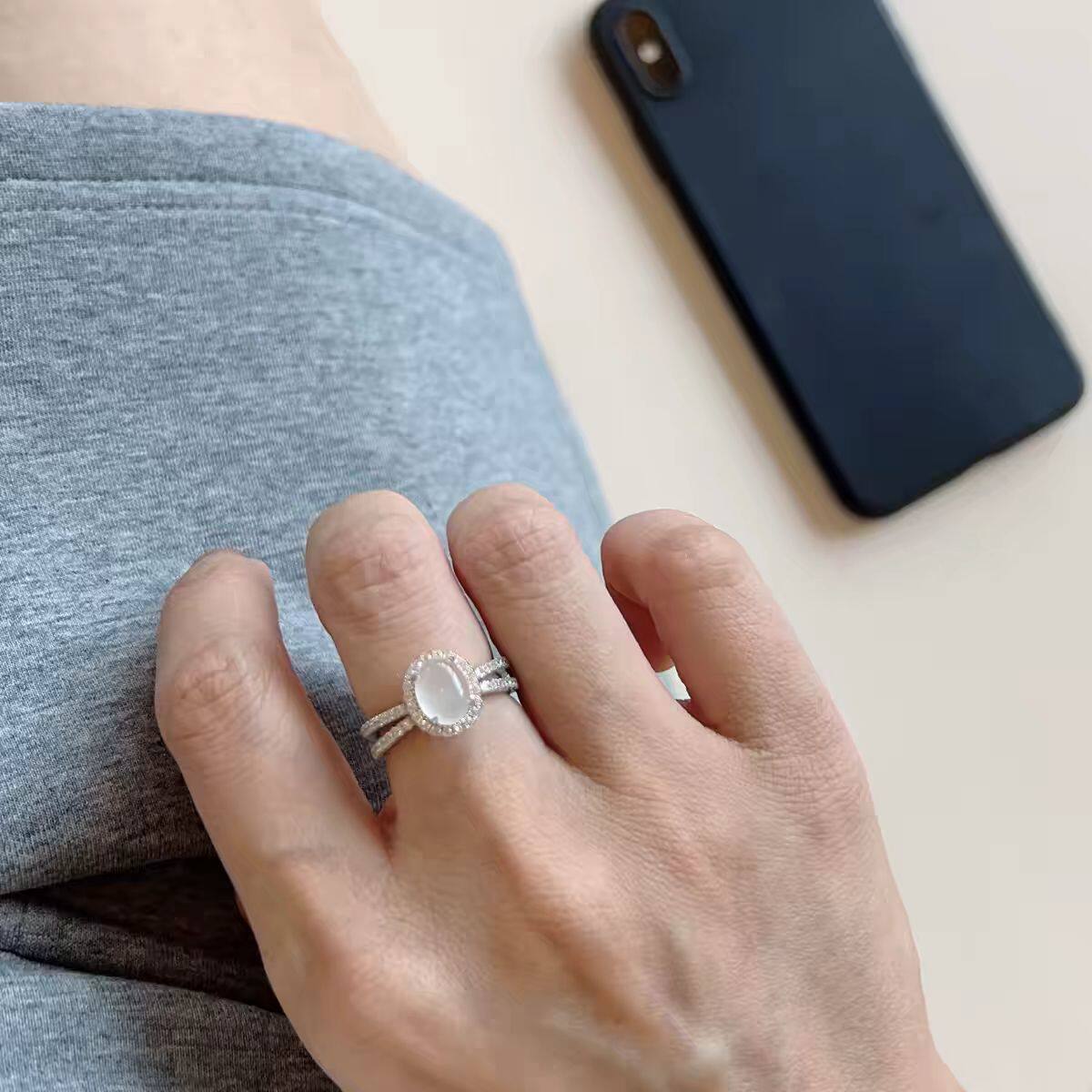 时尚小众设计新中式礼物个性白色鸽子蛋戒指女百搭轻奢气质名媛风