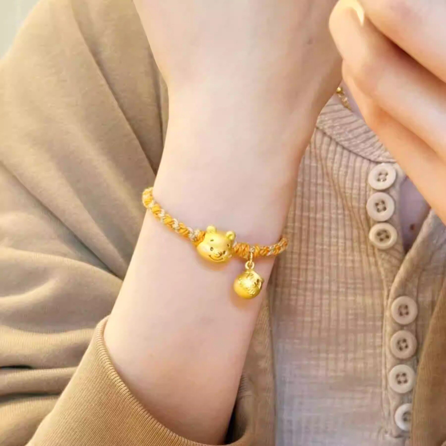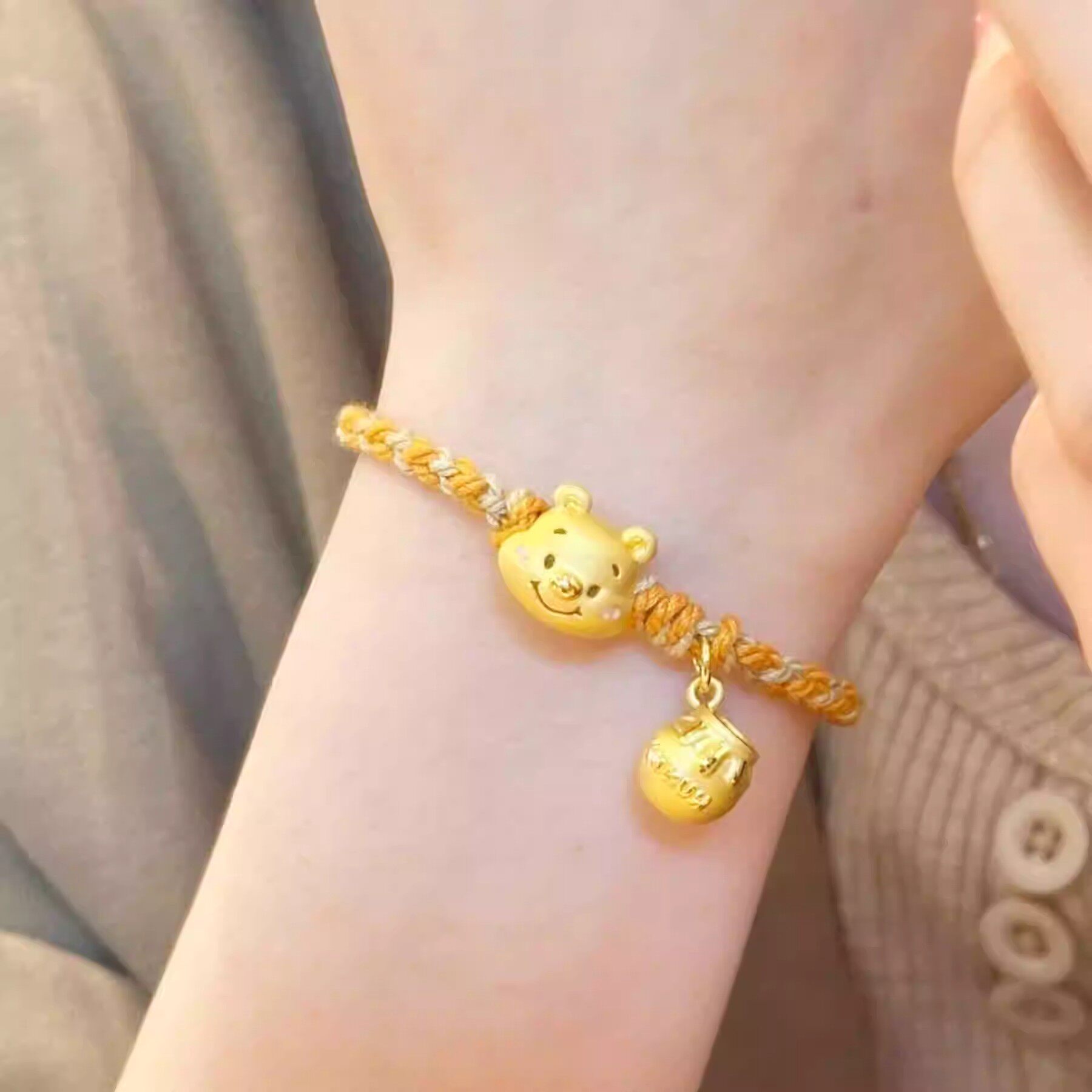 小熊噗噗!卡通黄色小熊手串!蜜罐吊坠可爱设计感小众个性甜美
