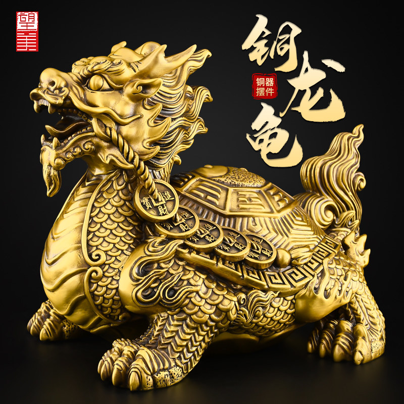黄铜龙龟摆件一对铜八卦龙头龟招客厅玄关装饰品财铜制霸下大号