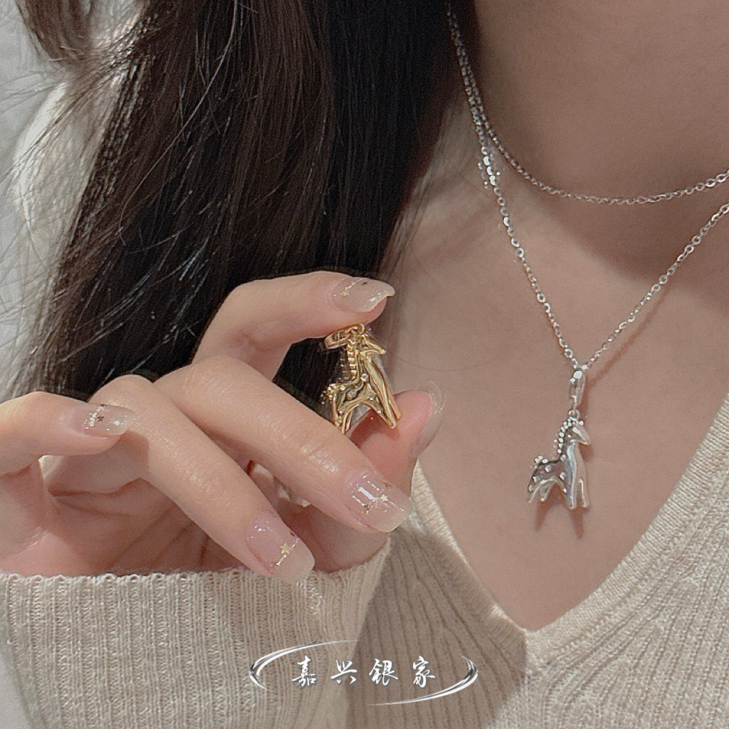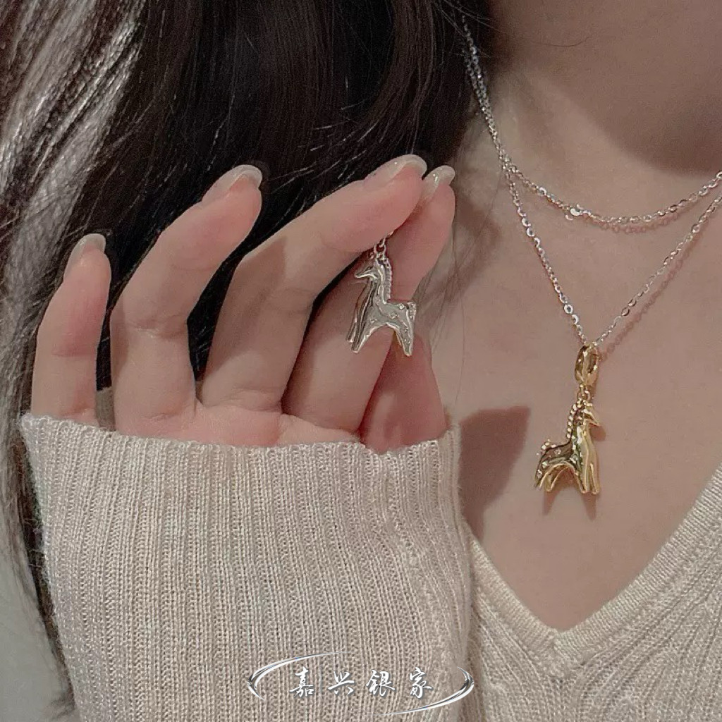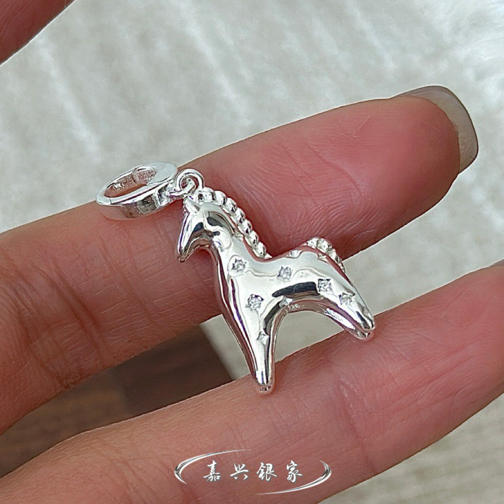 嘉兴银家s925纯银小众设计锆石小马吊坠韩式复古简约ins高级项坠