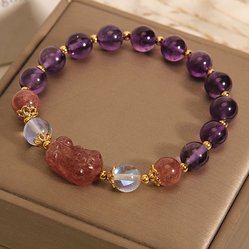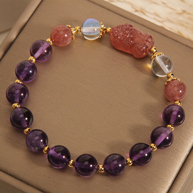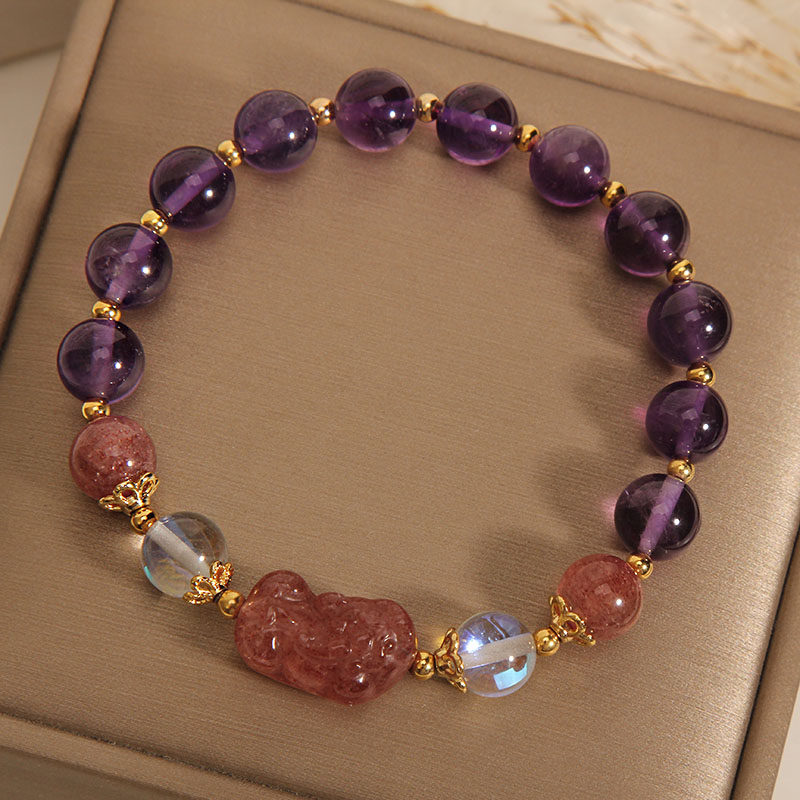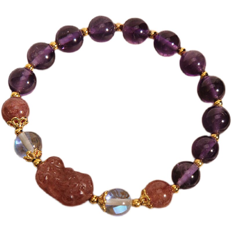 天然草莓晶貔貅手链女ins小众设计紫色水晶手串送女友闺蜜礼物潮