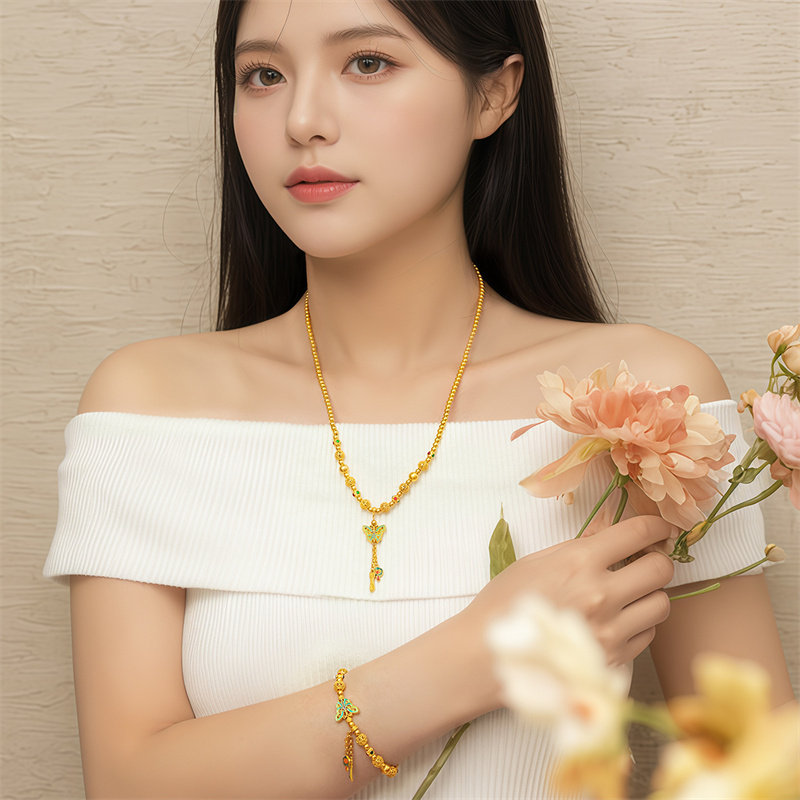 【一式两戴】诗普琳锦绣 足金黄金古法 蝴蝶珐琅女手链项链GB2485
