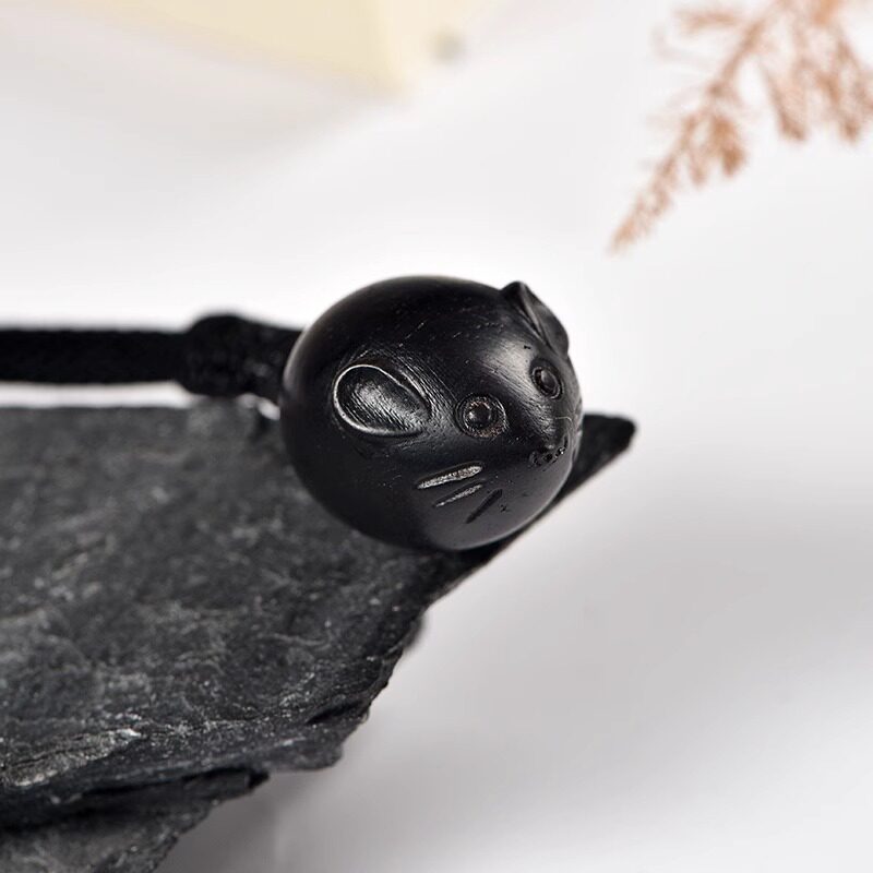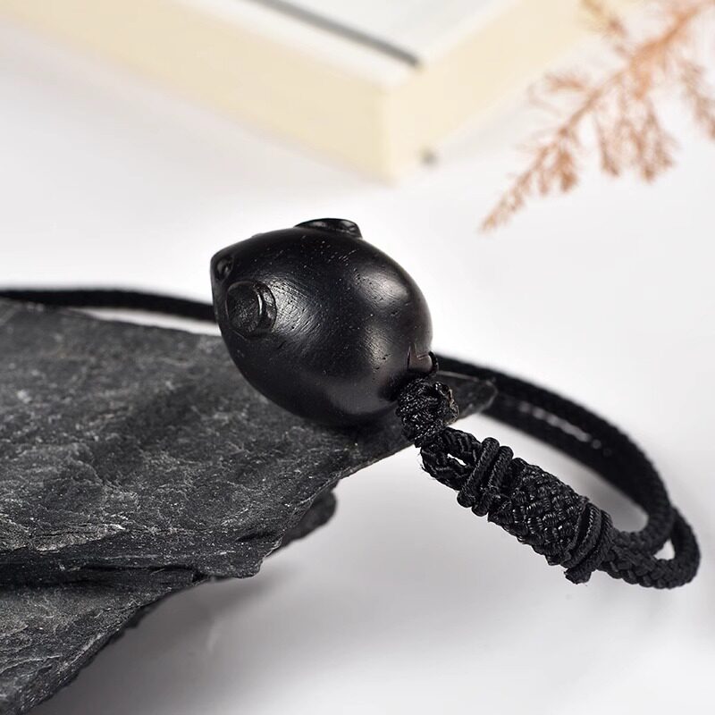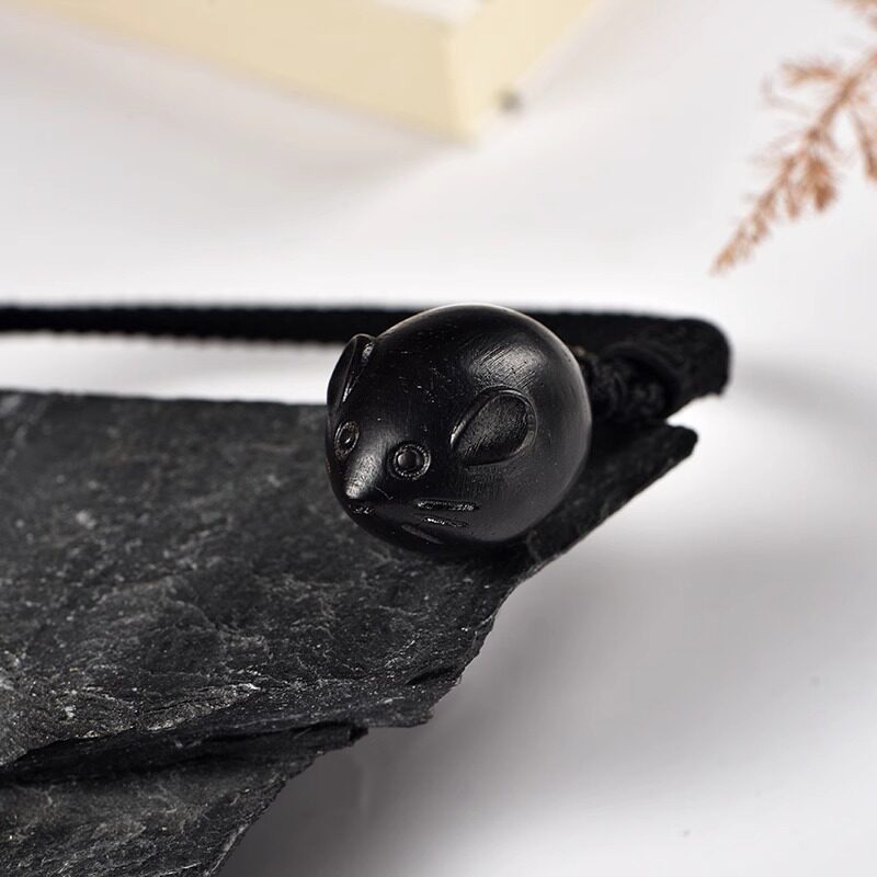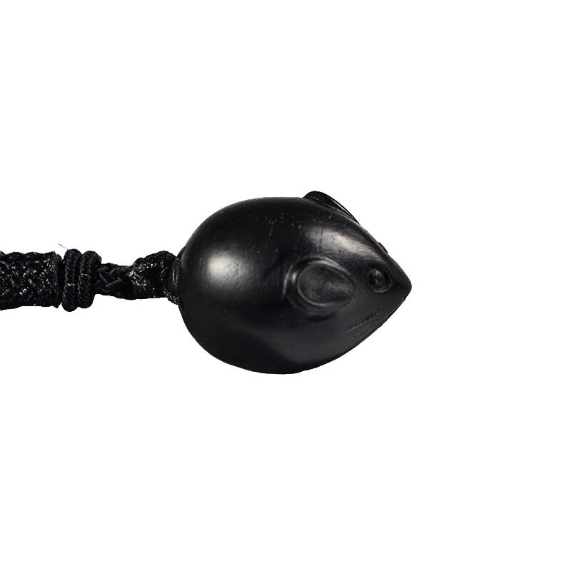 黑色木雕鼠吊坠挂件实木十二生肖木头鼠吉祥物挂件木质装饰工艺品