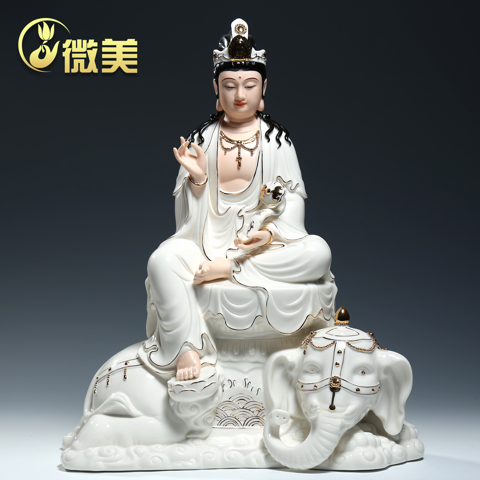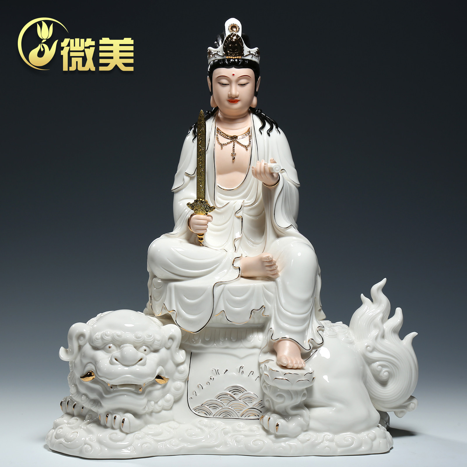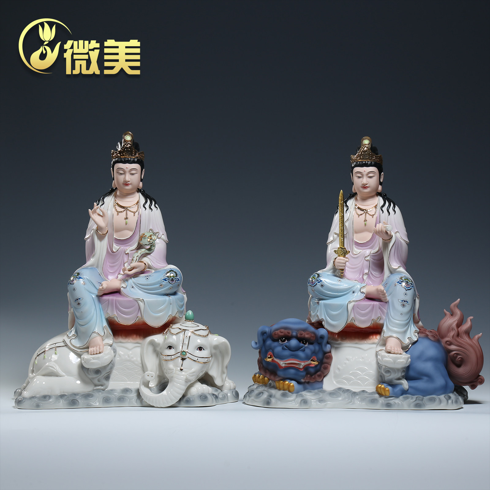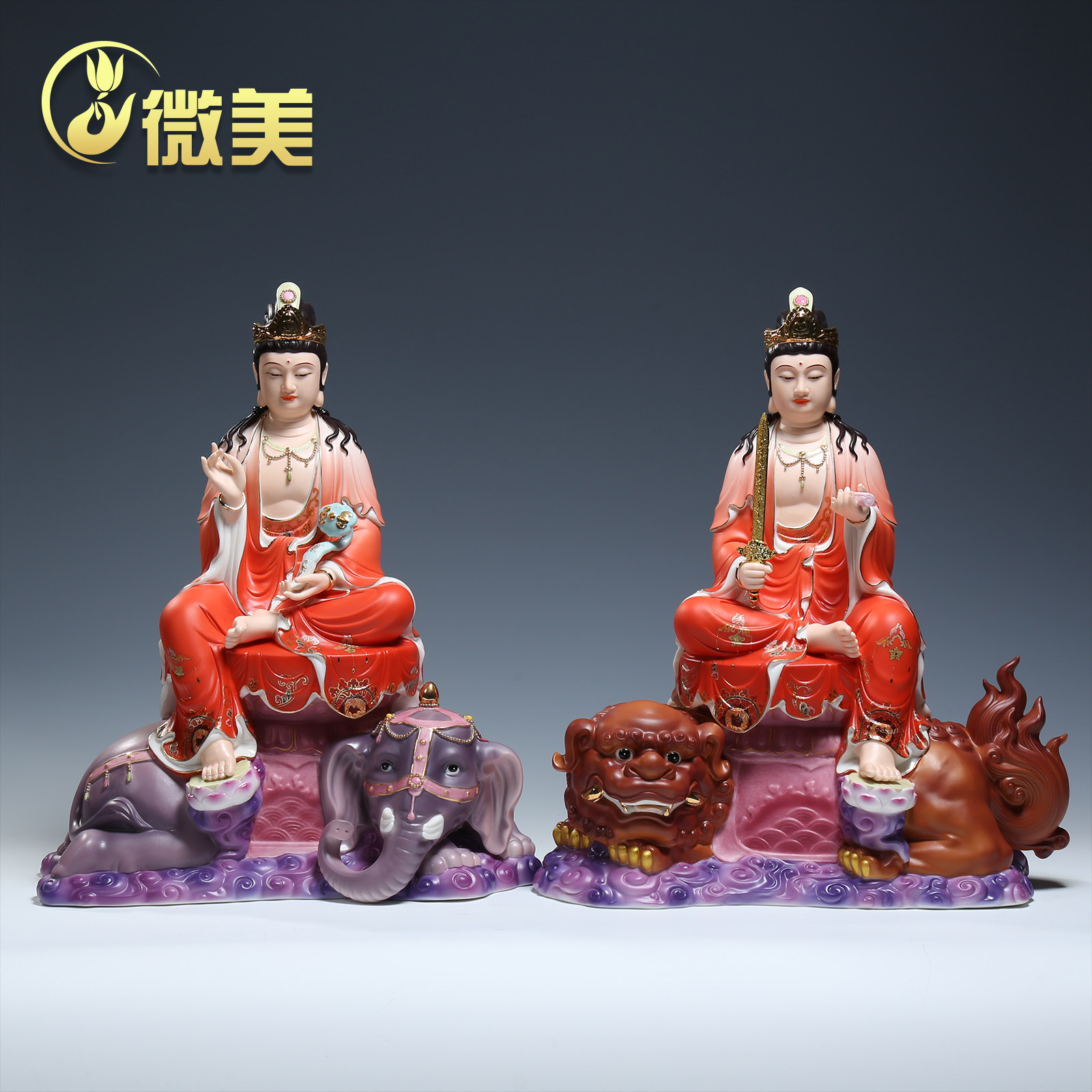 德化白瓷12吋16吋23吋文殊普贤菩萨佛像一对家用供奉彩绘陶瓷摆件