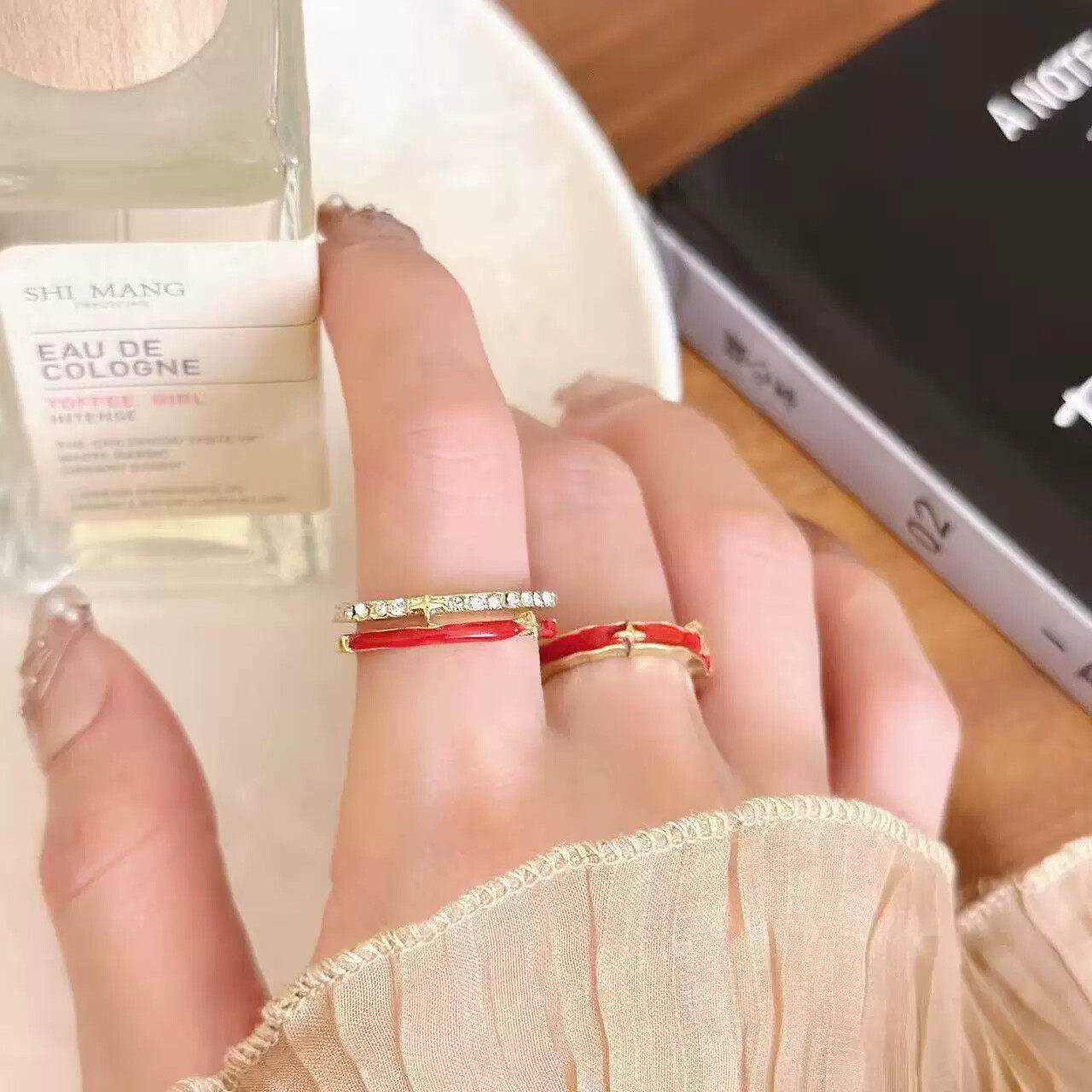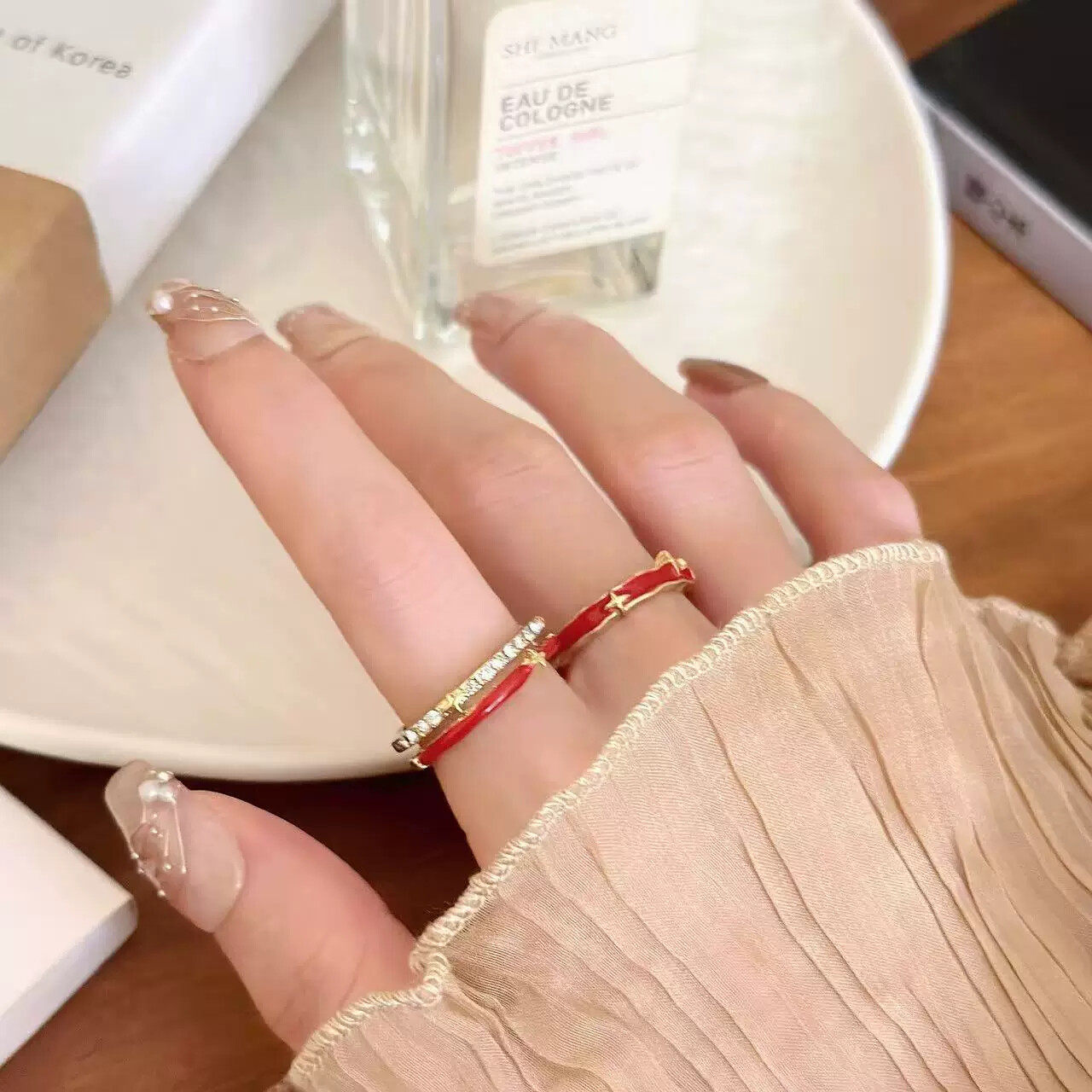 双层红色星星戒指女ins小众设计感开口可调节指环个性百搭食指戒