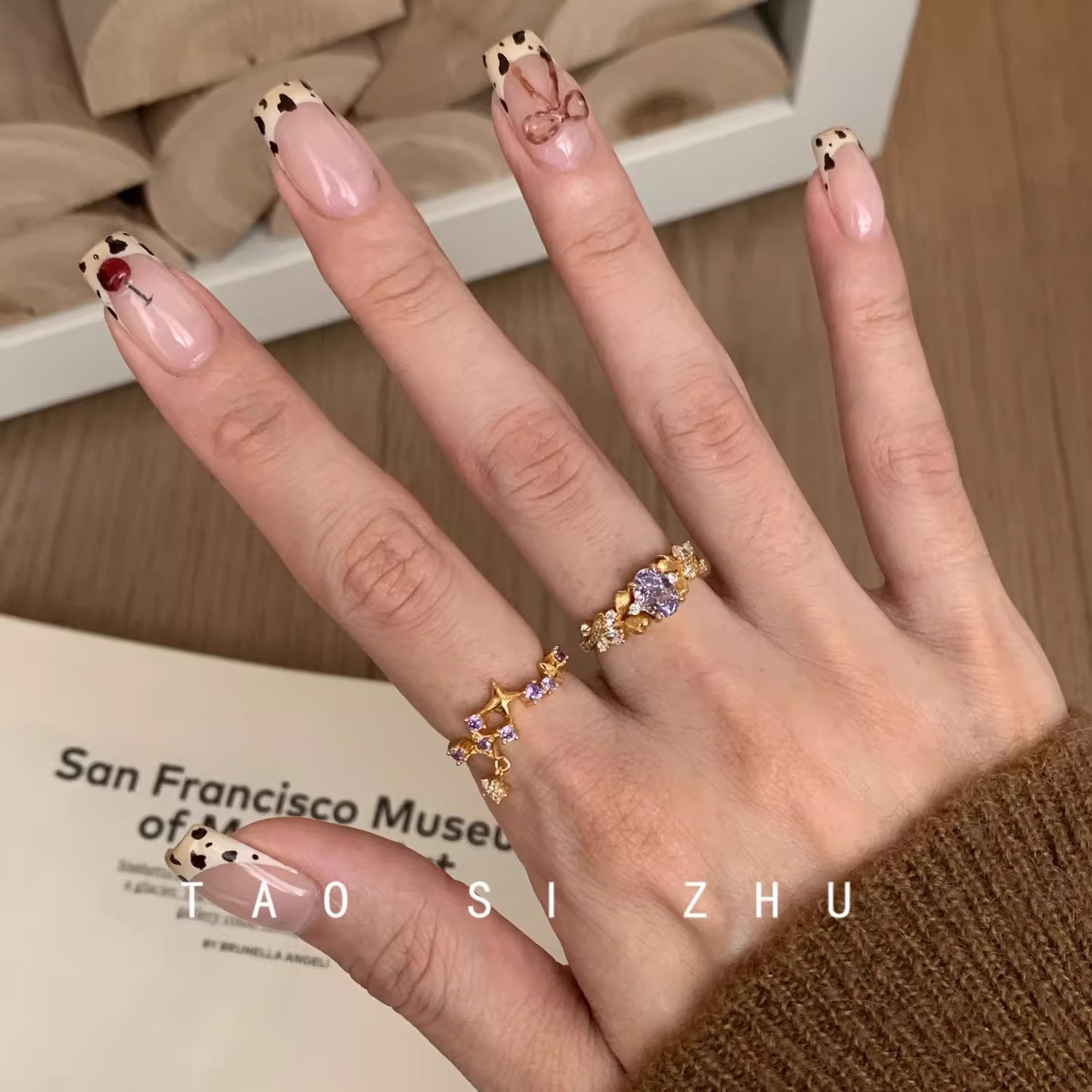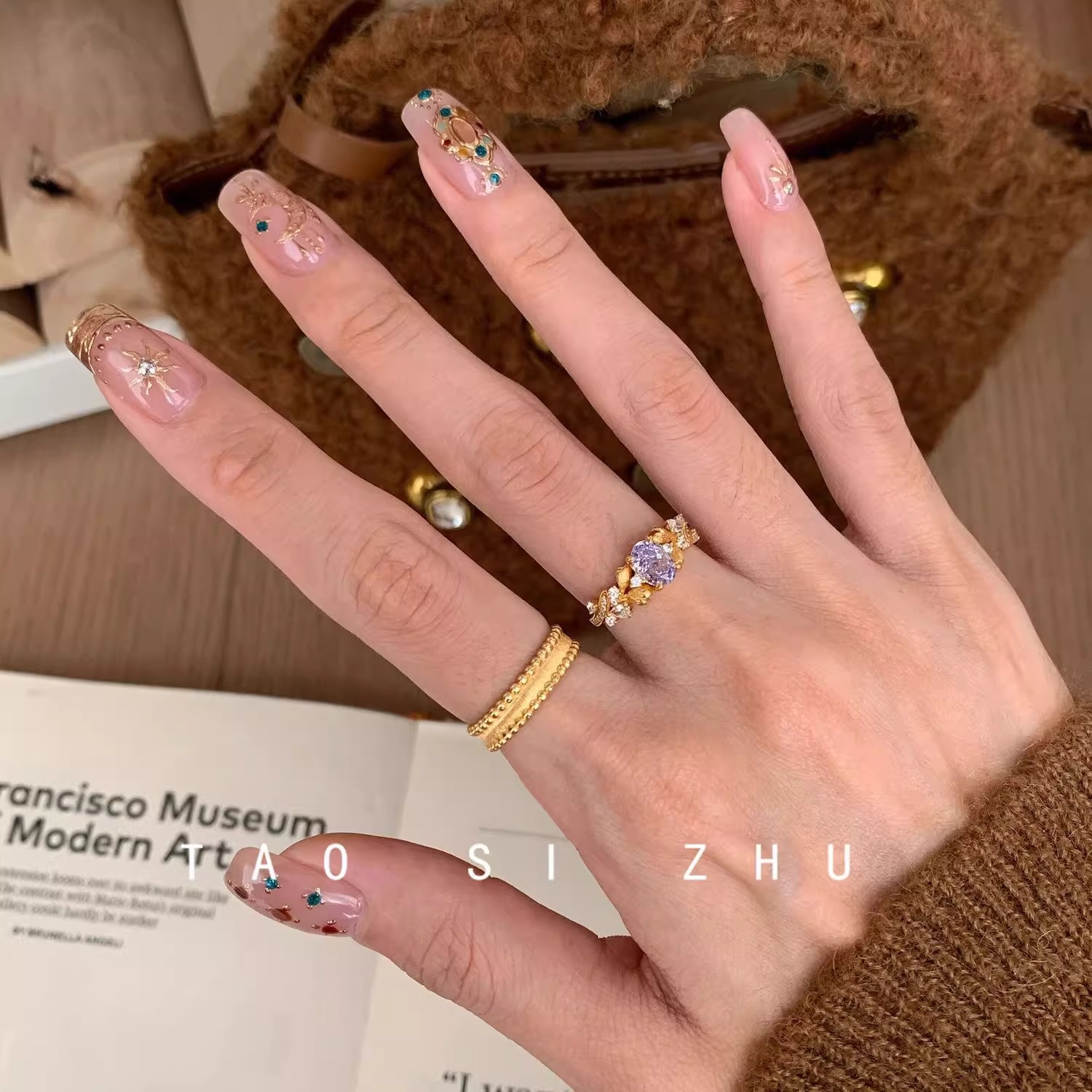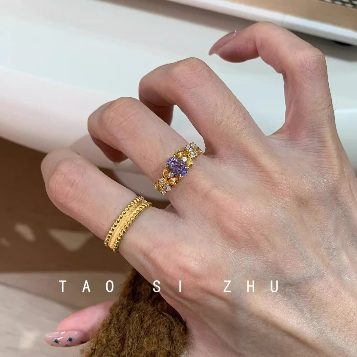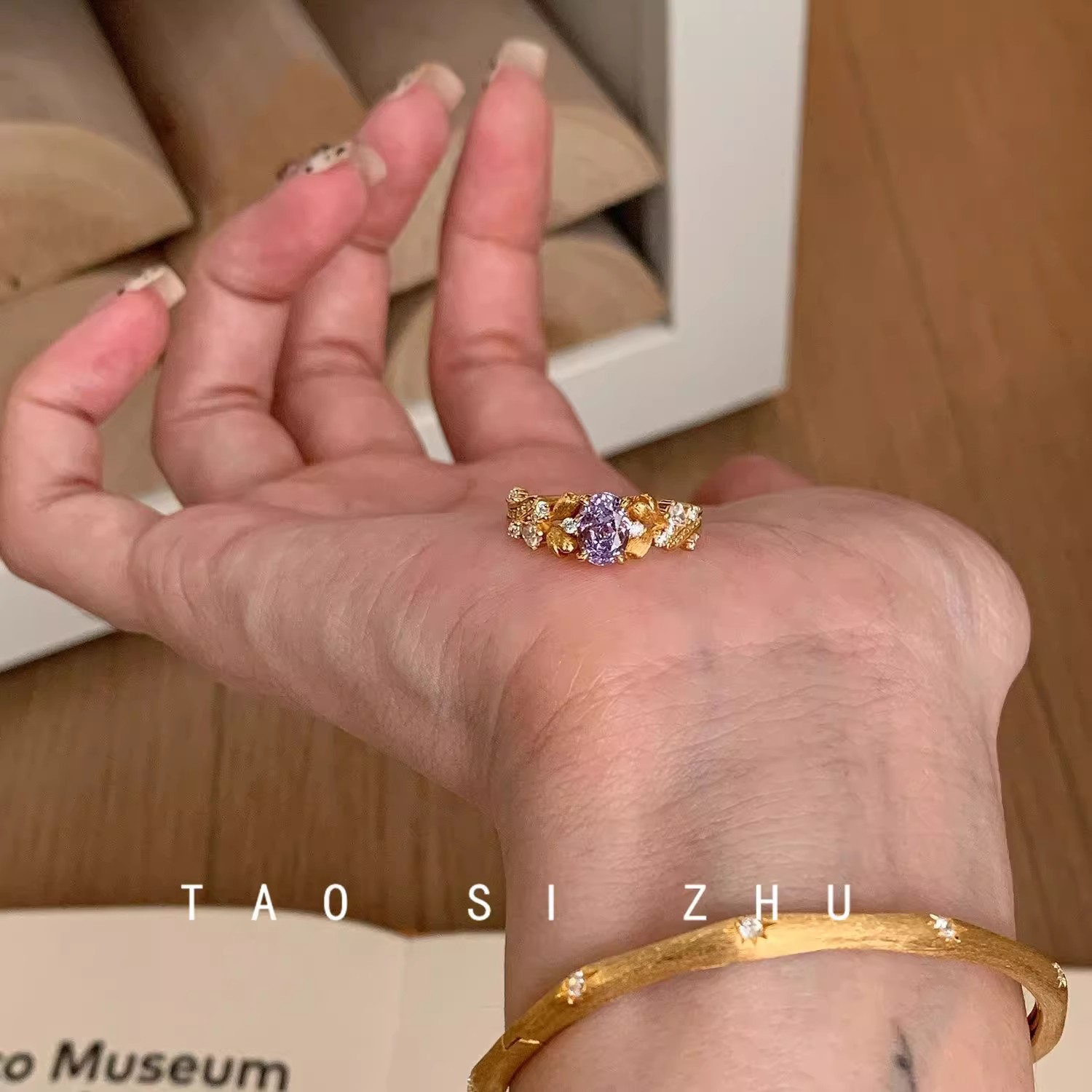 vintage中古紫荆花满天星轻奢高级感开口戒指环镀金奢华