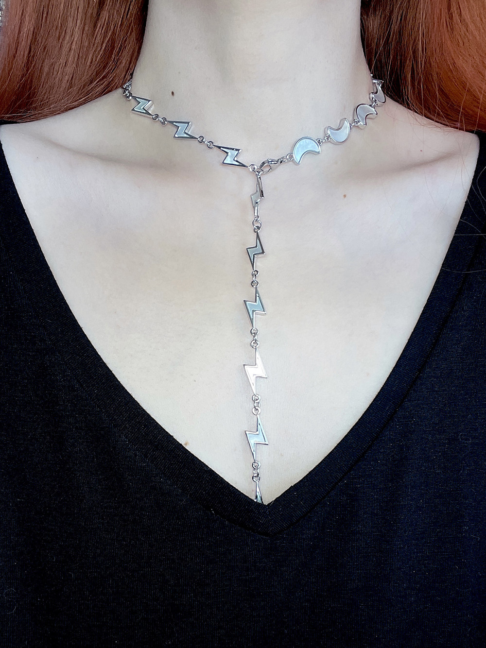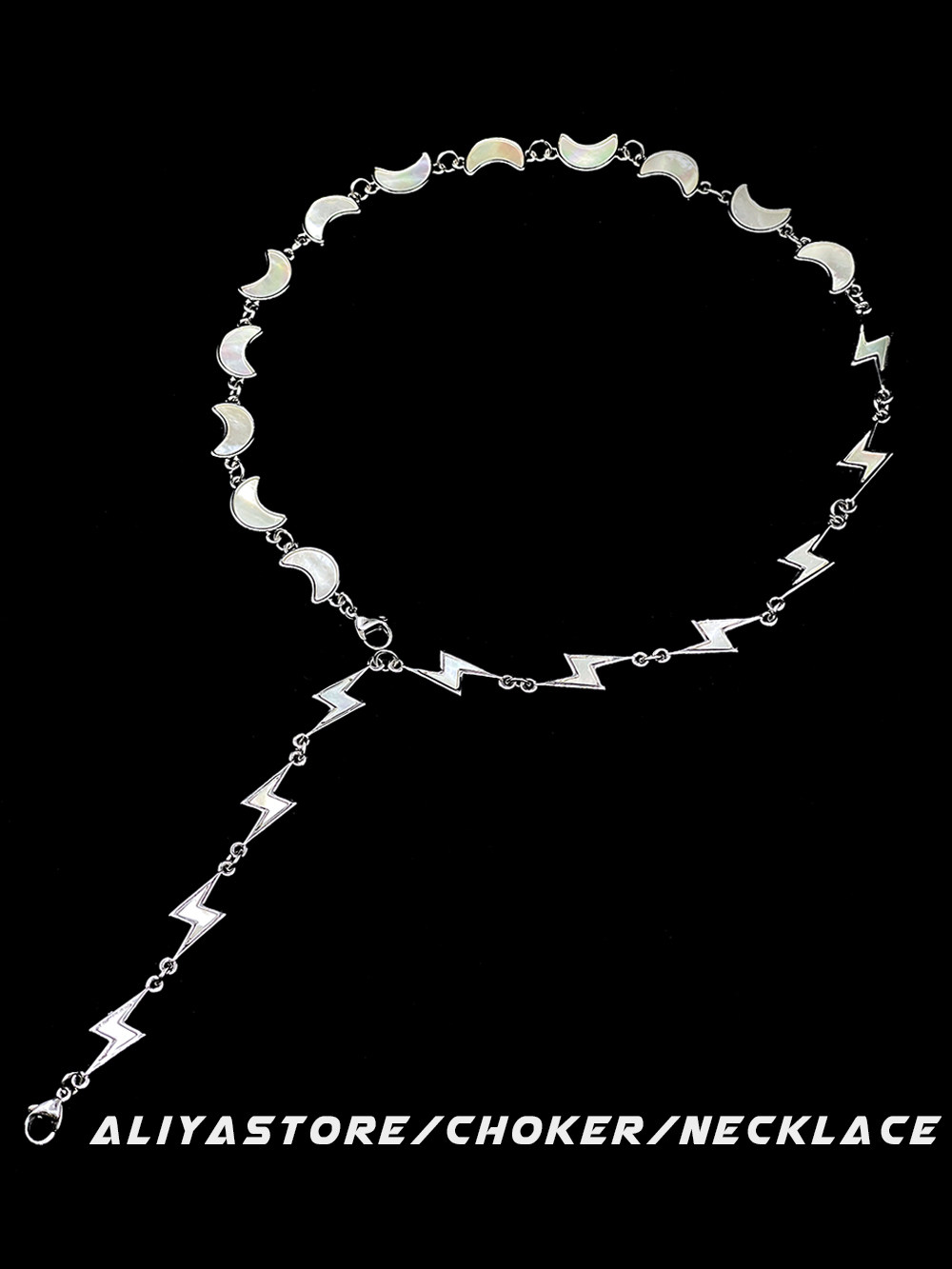 AliyaStore/原创设计闪电月亮拼接choker贝壳项链多层小众锁骨链