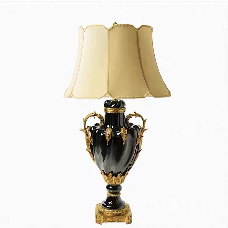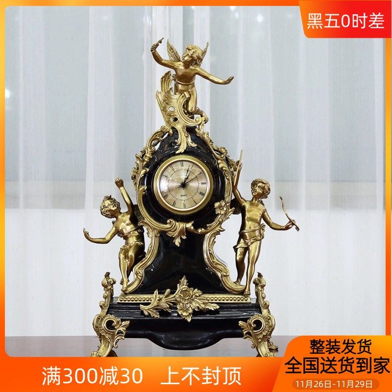 美式黑色陶瓷配铜玄关装饰摆件欧式古典样板台灯烛台座钟装饰品