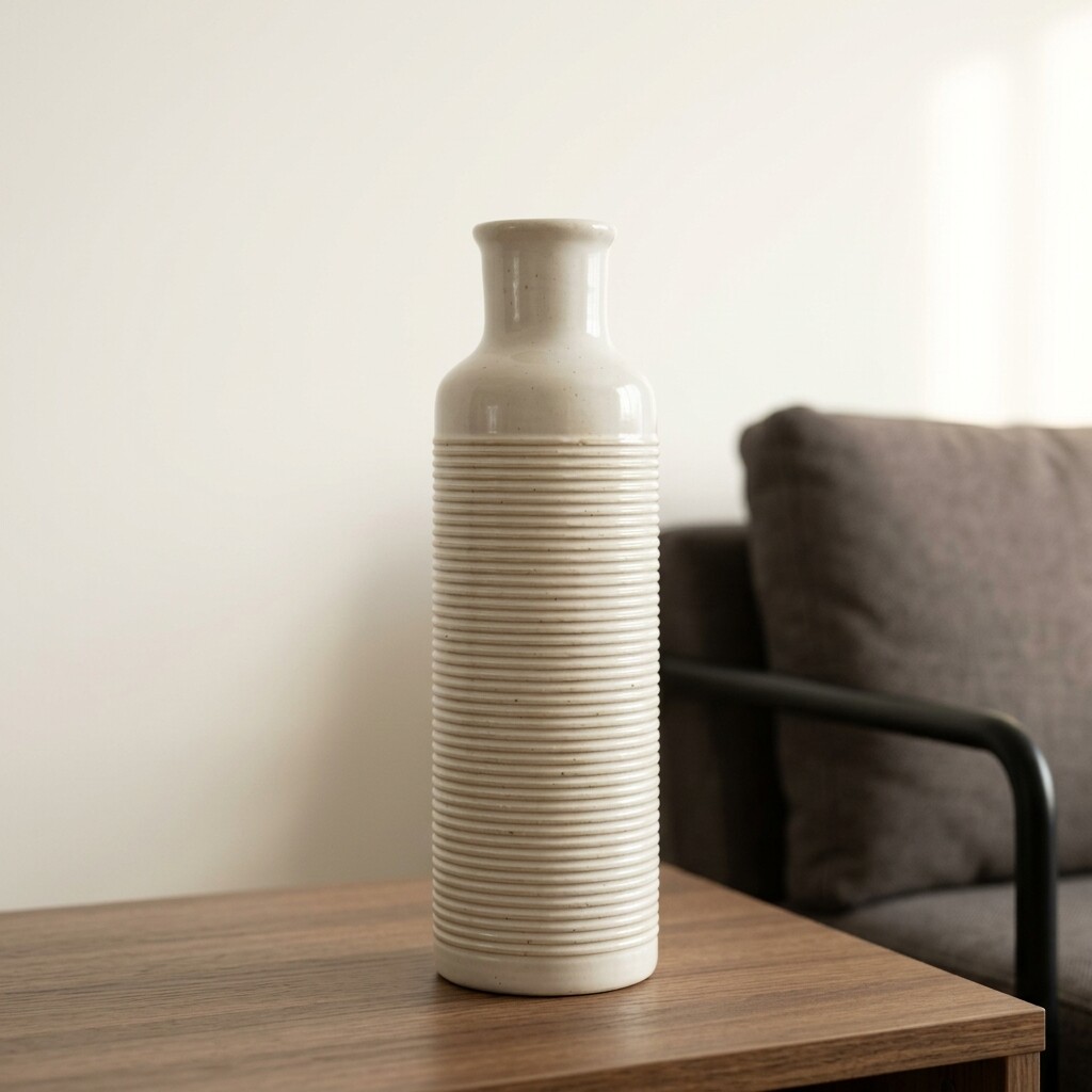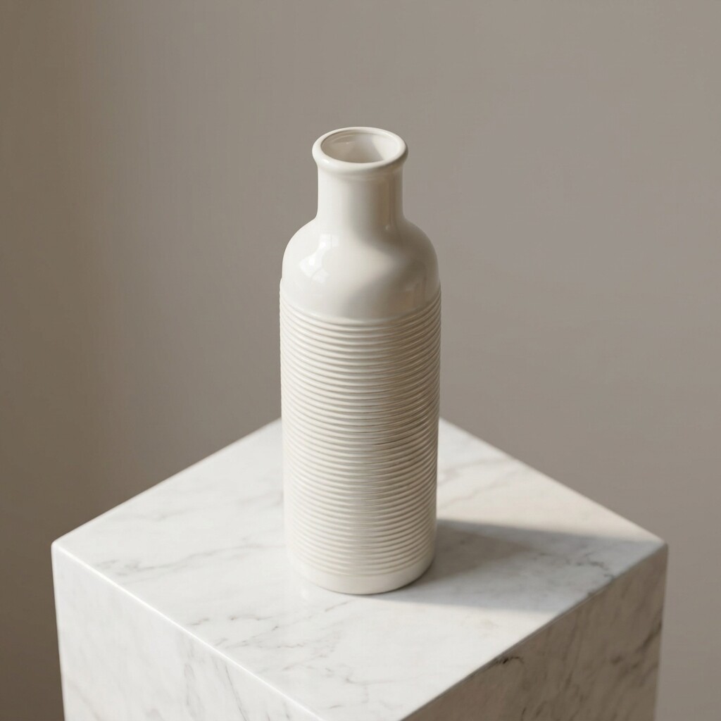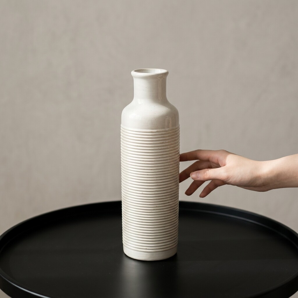 简约现代螺纹陶瓷花瓶白色竖立装饰摆件客厅卧室纯欲极简风