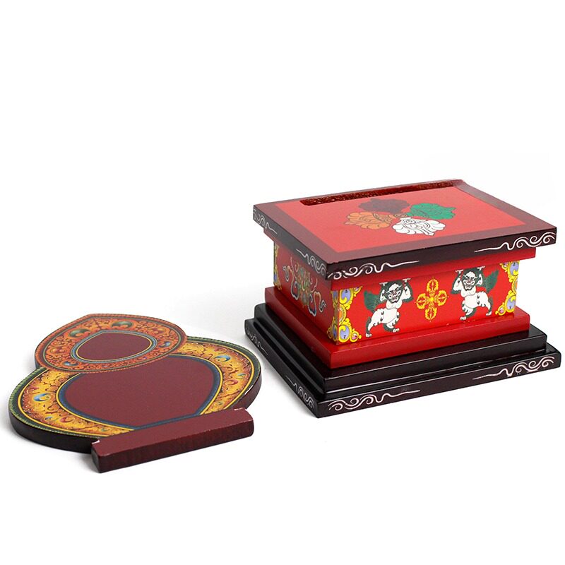 藏式实木彩绘佛像底座家用佛龛供奉佛台橡胶木座台菩萨神台摆件