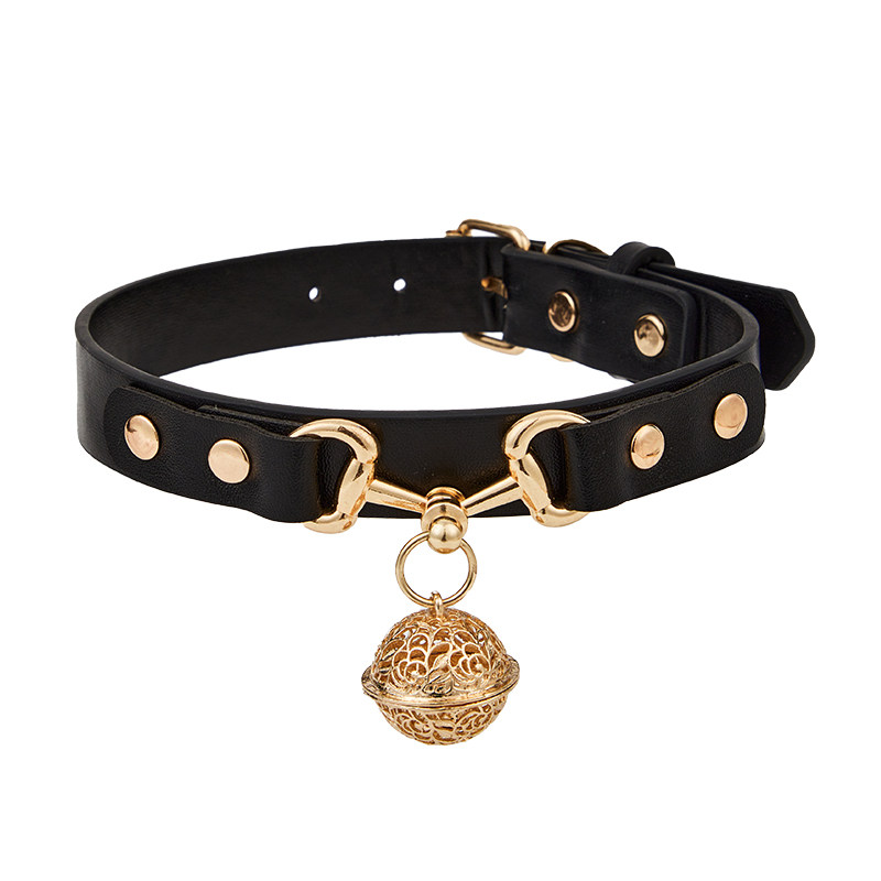 宫铃项圈女定制刻字高级黑色铃铛choker锁骨项圈狗狗笼中鸟牵引绳