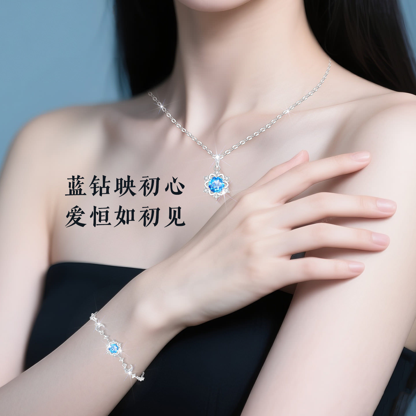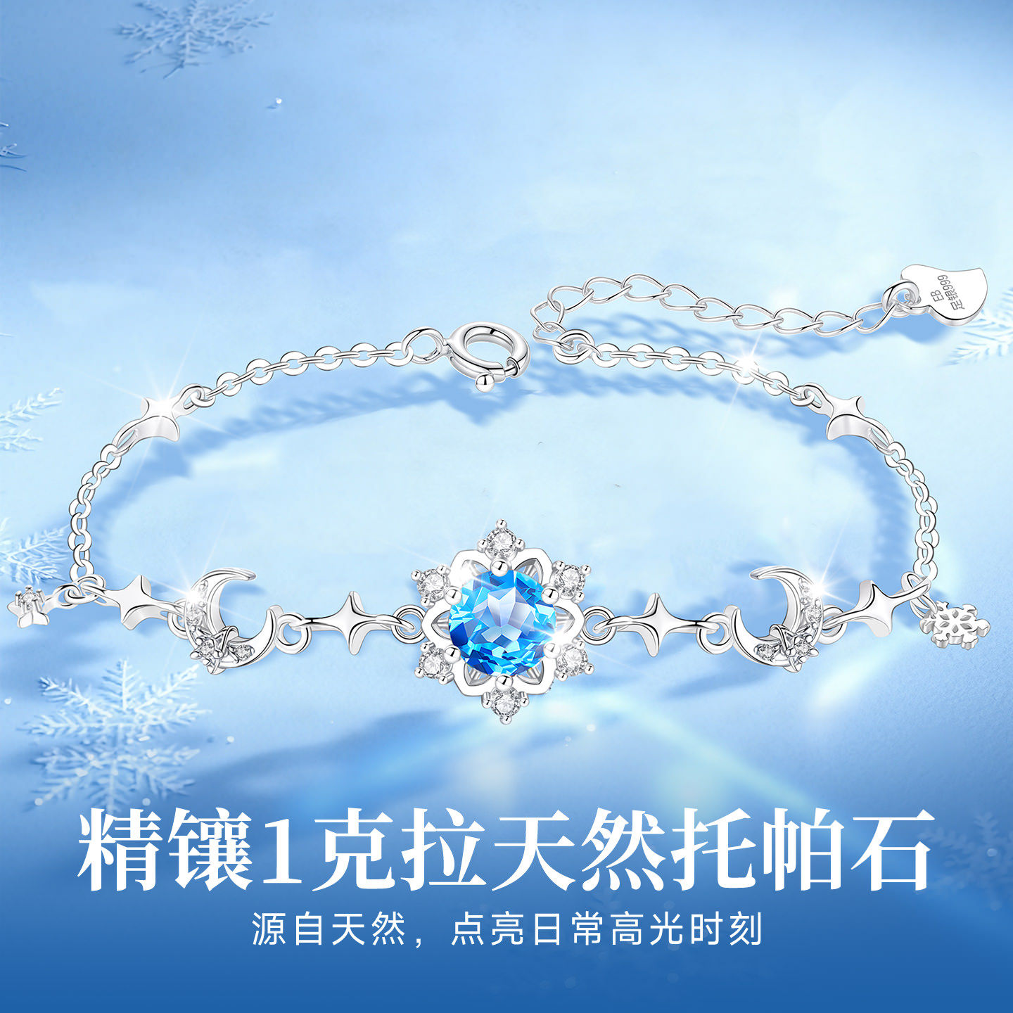 天然蓝色托帕石宝石雪花项链手链女款女999纯银女士生日礼物老婆