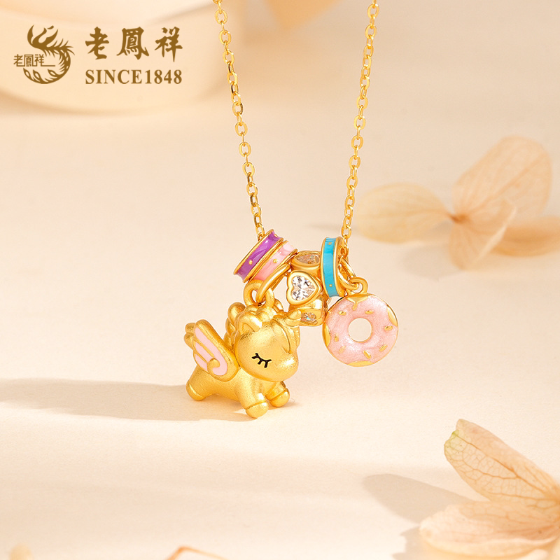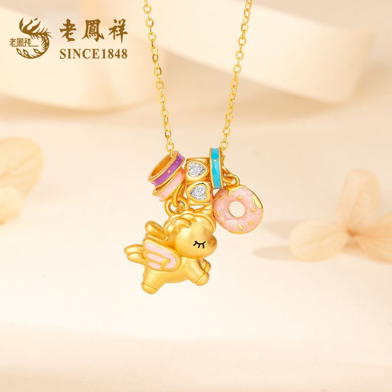 老凤祥小马独角兽银项链女2026新款纯银吊坠锁骨链生日礼物送女友