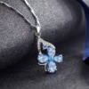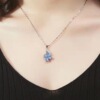 时尚四叶草蓝水晶吊坠海蓝宝石菱形项链欧美复古镀银气质七夕礼物