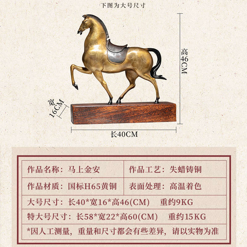 《马上金安》铜金岁月全黄铜马摆件工艺品铜器办公室书房桌面装饰
