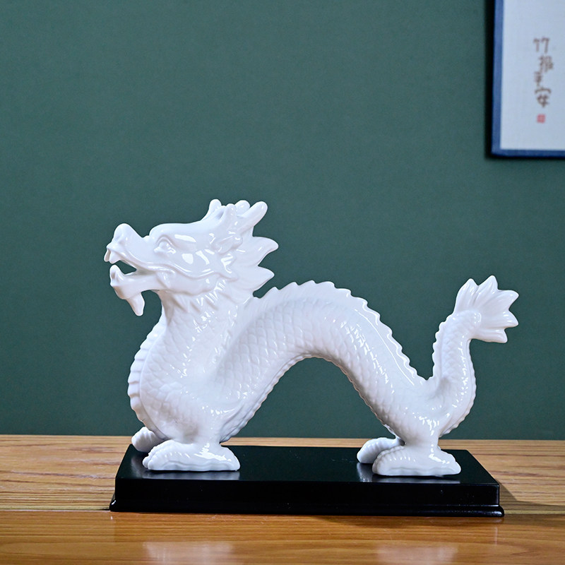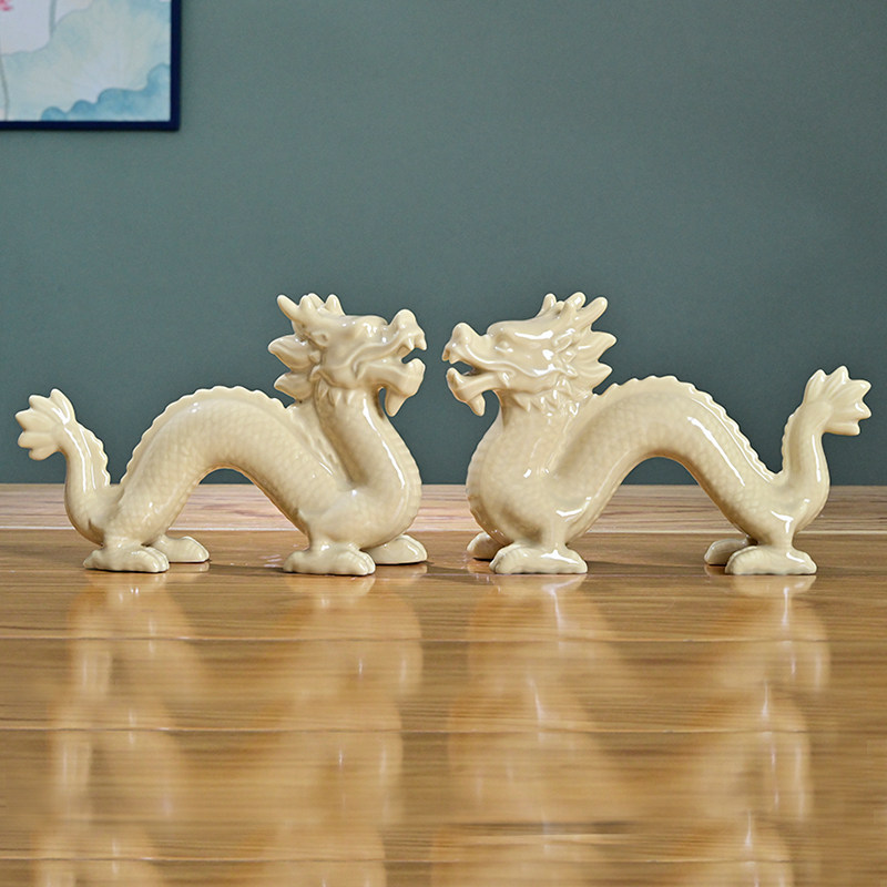 双龙戏珠红色摆件十二12生肖陶瓷招财客厅工艺品瓷器镇宅家居饰品