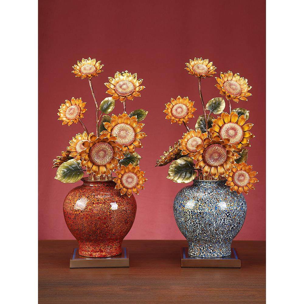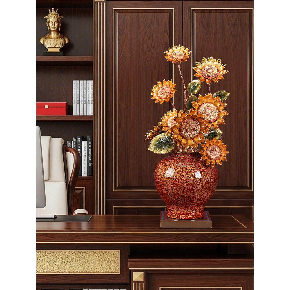 欣欣向荣向日葵花瓶摆件大漆铜工艺品客厅玄关酒柜装饰品乔迁礼物
