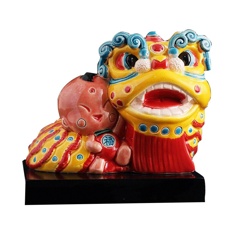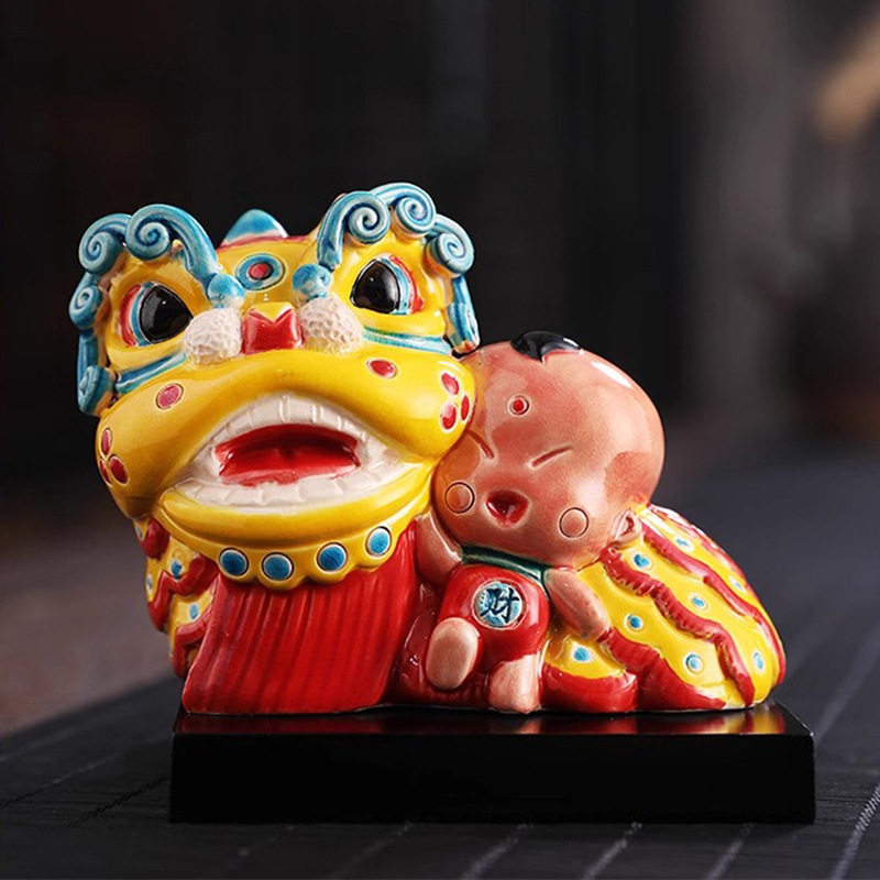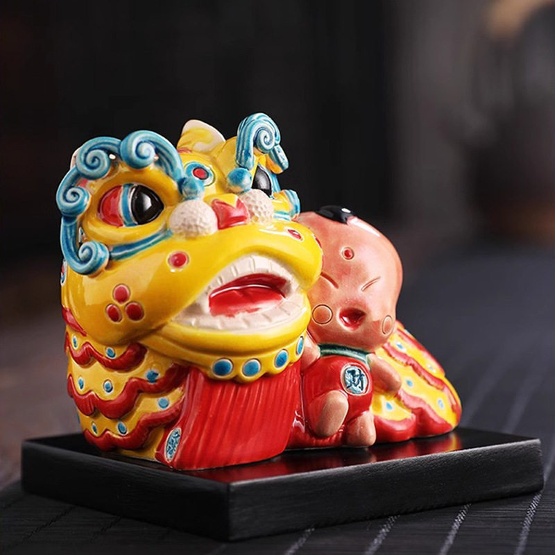 德化醒狮摆件国潮舞狮文创狮头陶瓷工艺品客厅酒柜装饰品家居