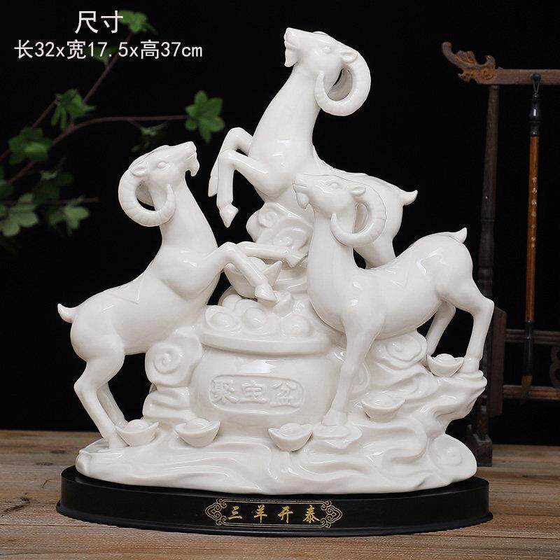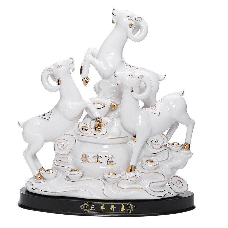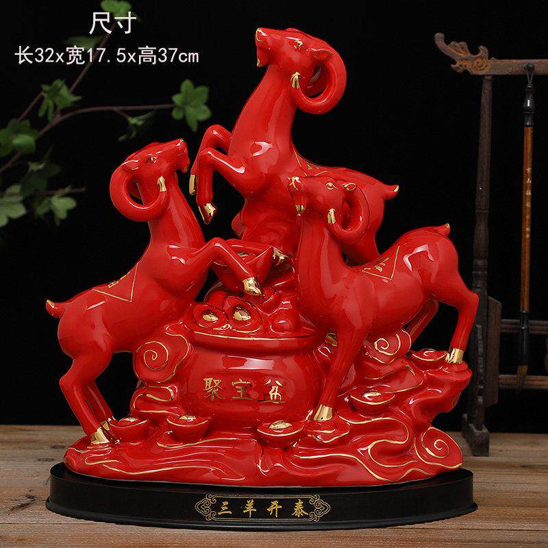 陶瓷黄色三羊开 泰羊摆件十二生肖羊客厅装饰家居工艺礼品摆饰摆