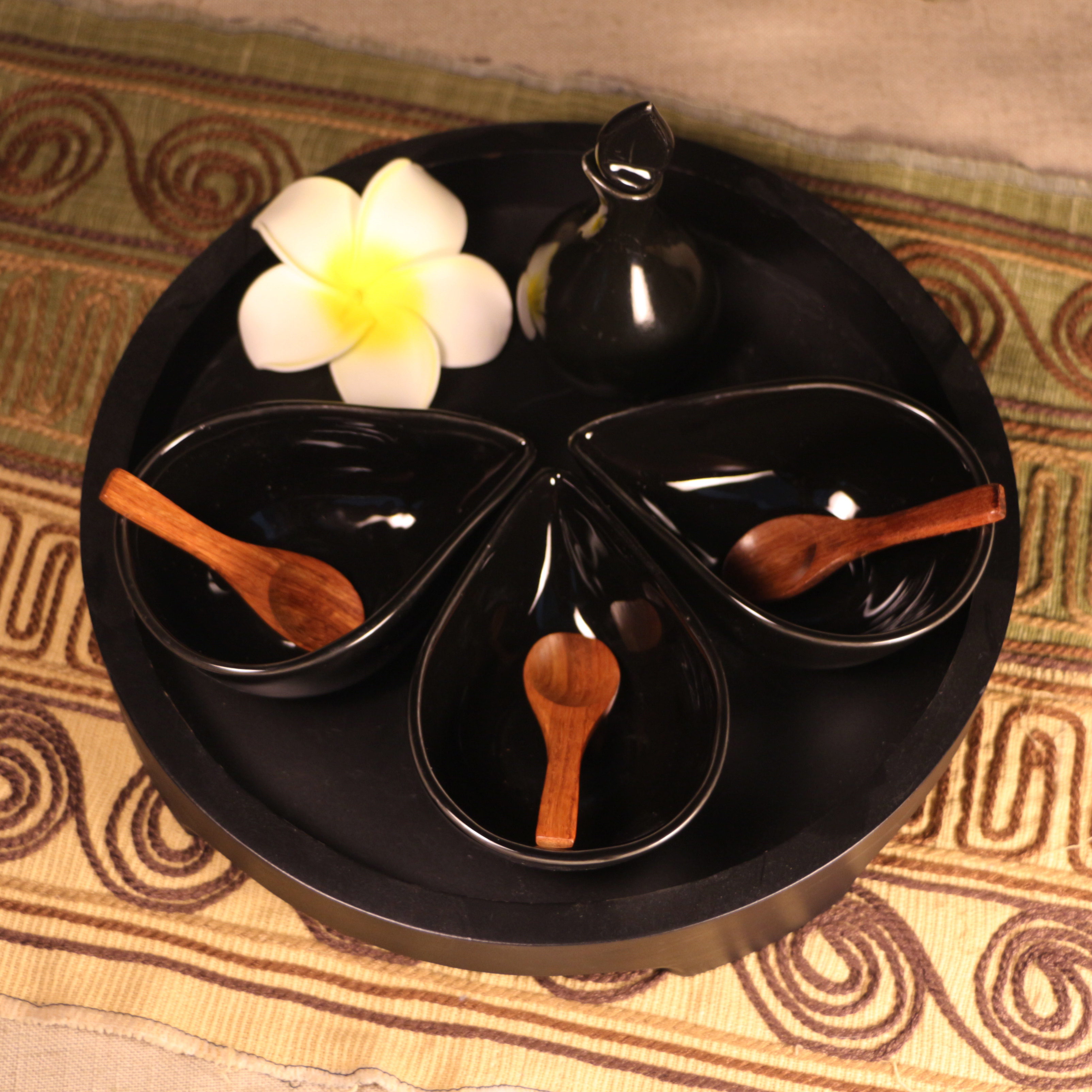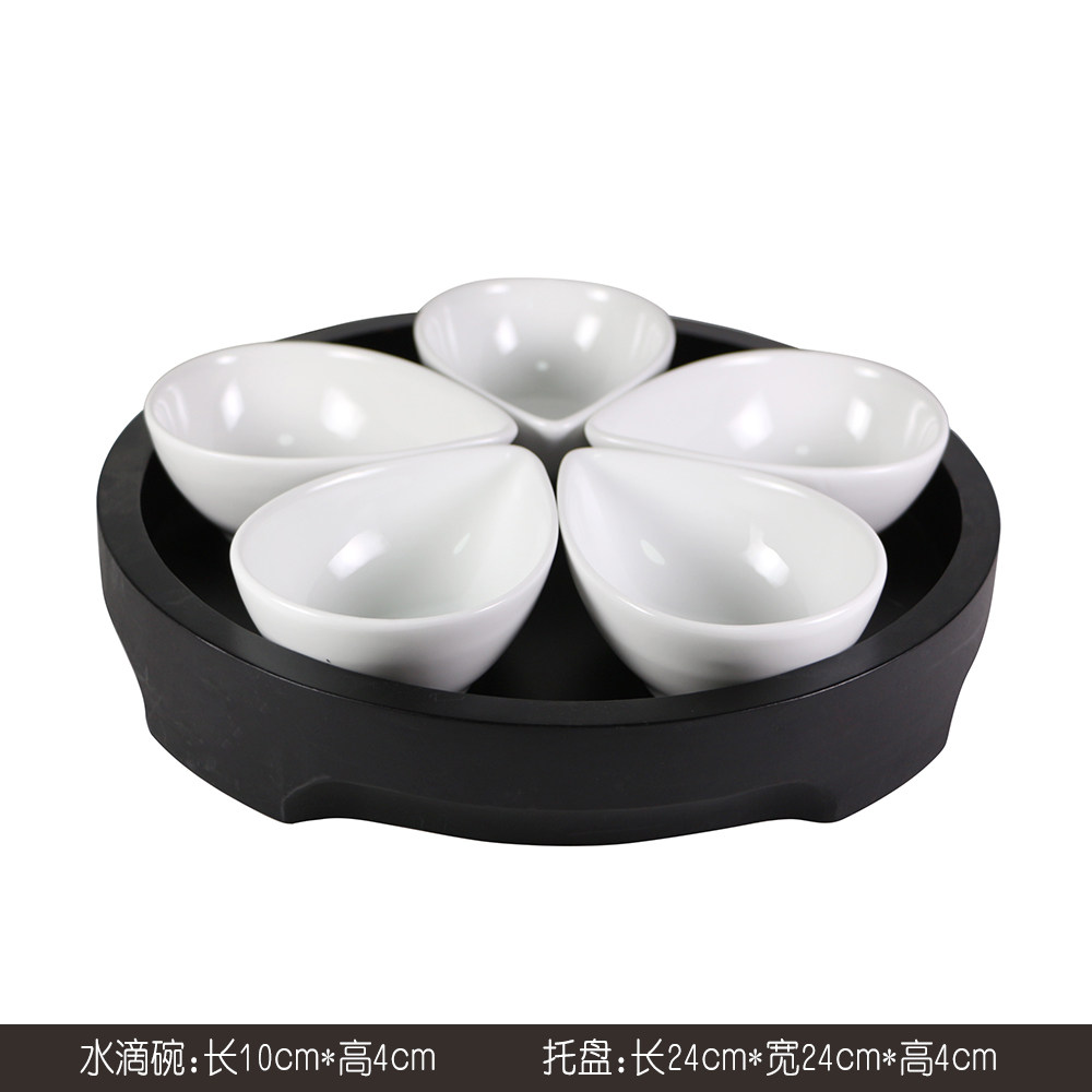 泰式水疗SPA美容院白色黑色亮面水滴碗托盘套装调配精油碗分料碗