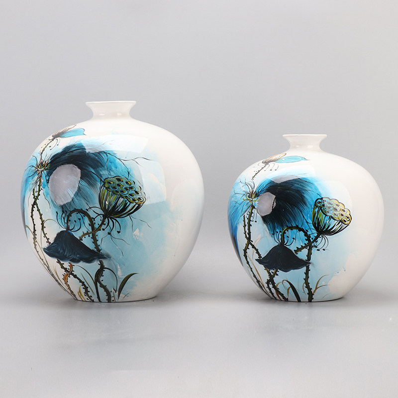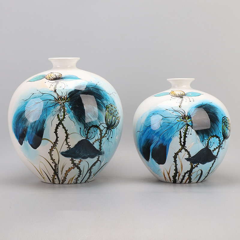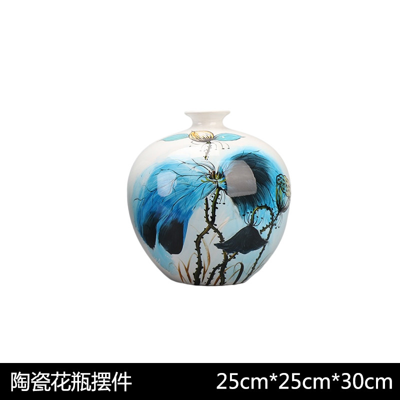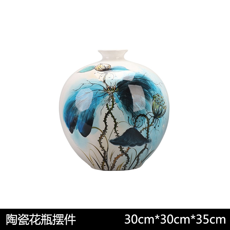 极速新中式d陶罐蓝色荷叶花瓶花器插花客厅玄关酒柜样板间台面书