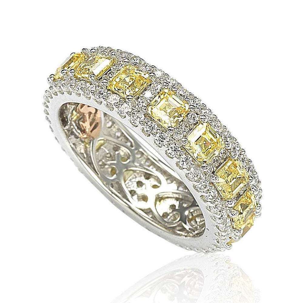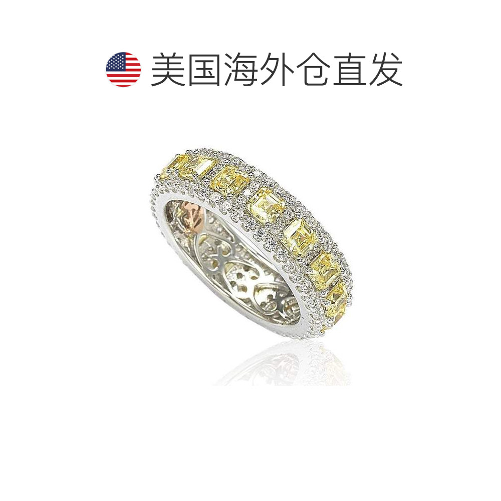 自营 Suzy Levian 纯银立方氧化锆黄色和白色现代永恒戒指 - 黄色