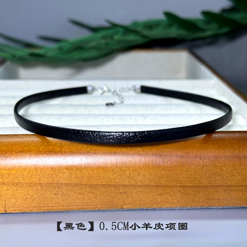 不掉色高级黑色羊皮项圈女choker颈链小众设计时尚气质2026年新款