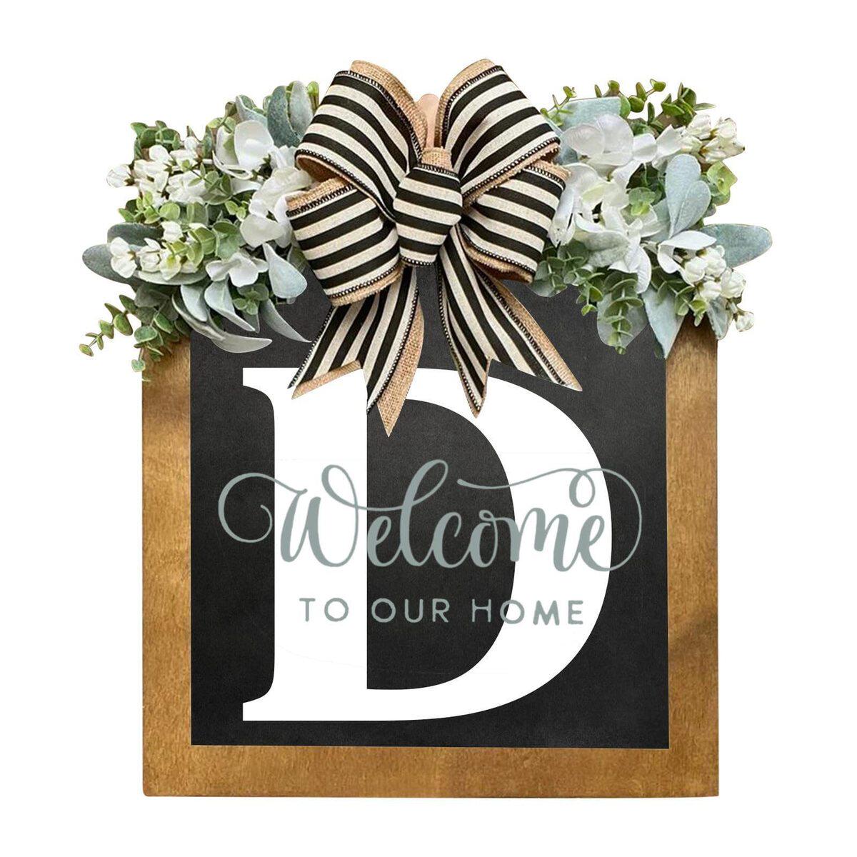 新品26字母前门花环木牌挂件16英寸欢迎标志木质花环工艺品