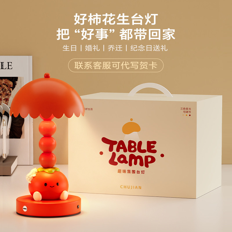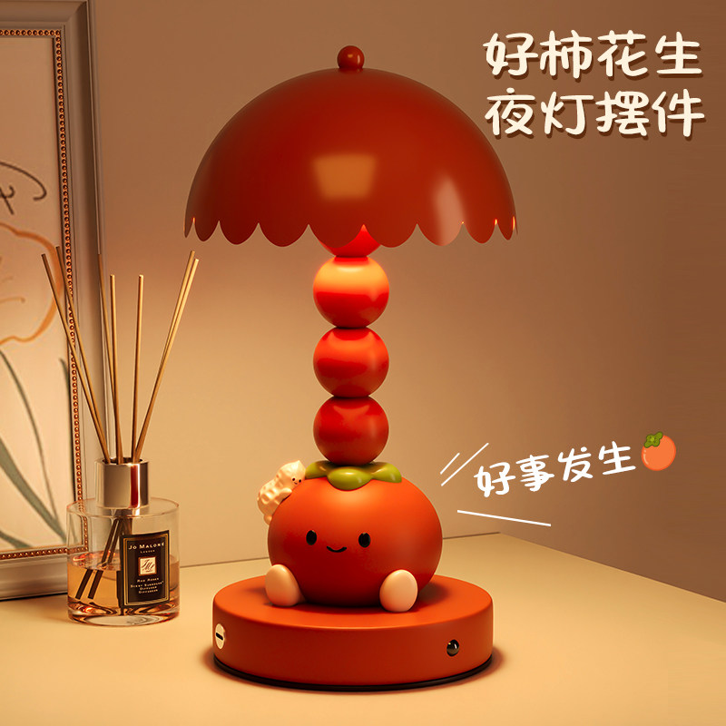 柿柿如意好柿花生长明灯结婚台灯床头灯陪嫁红色摆件订婚新婚礼物