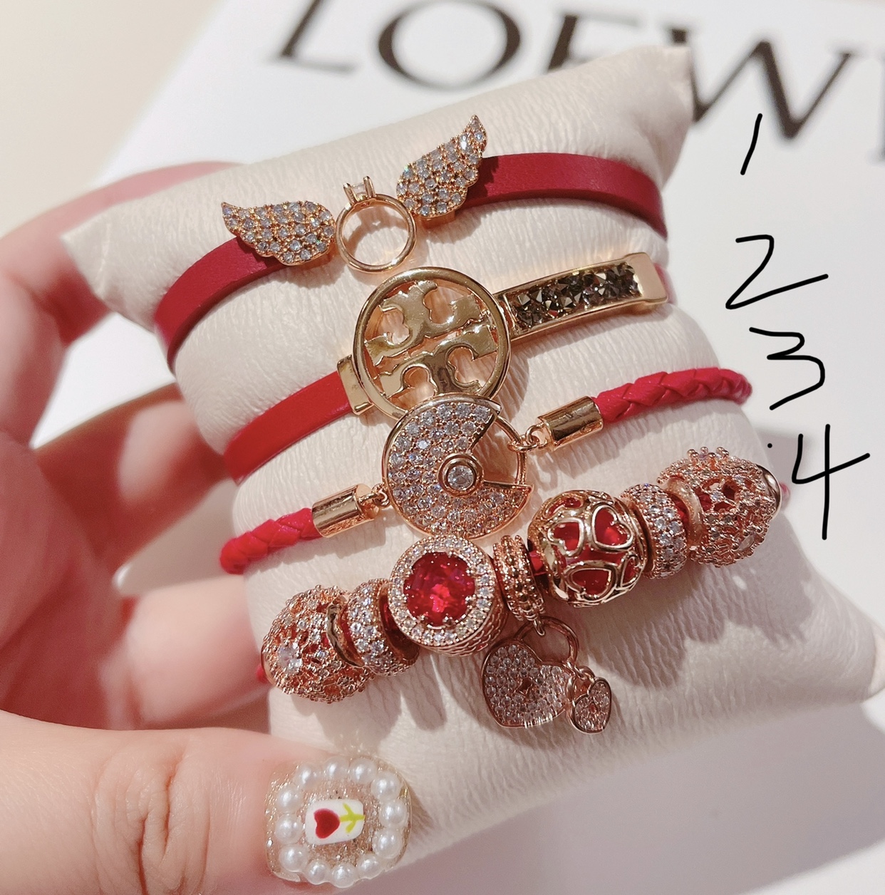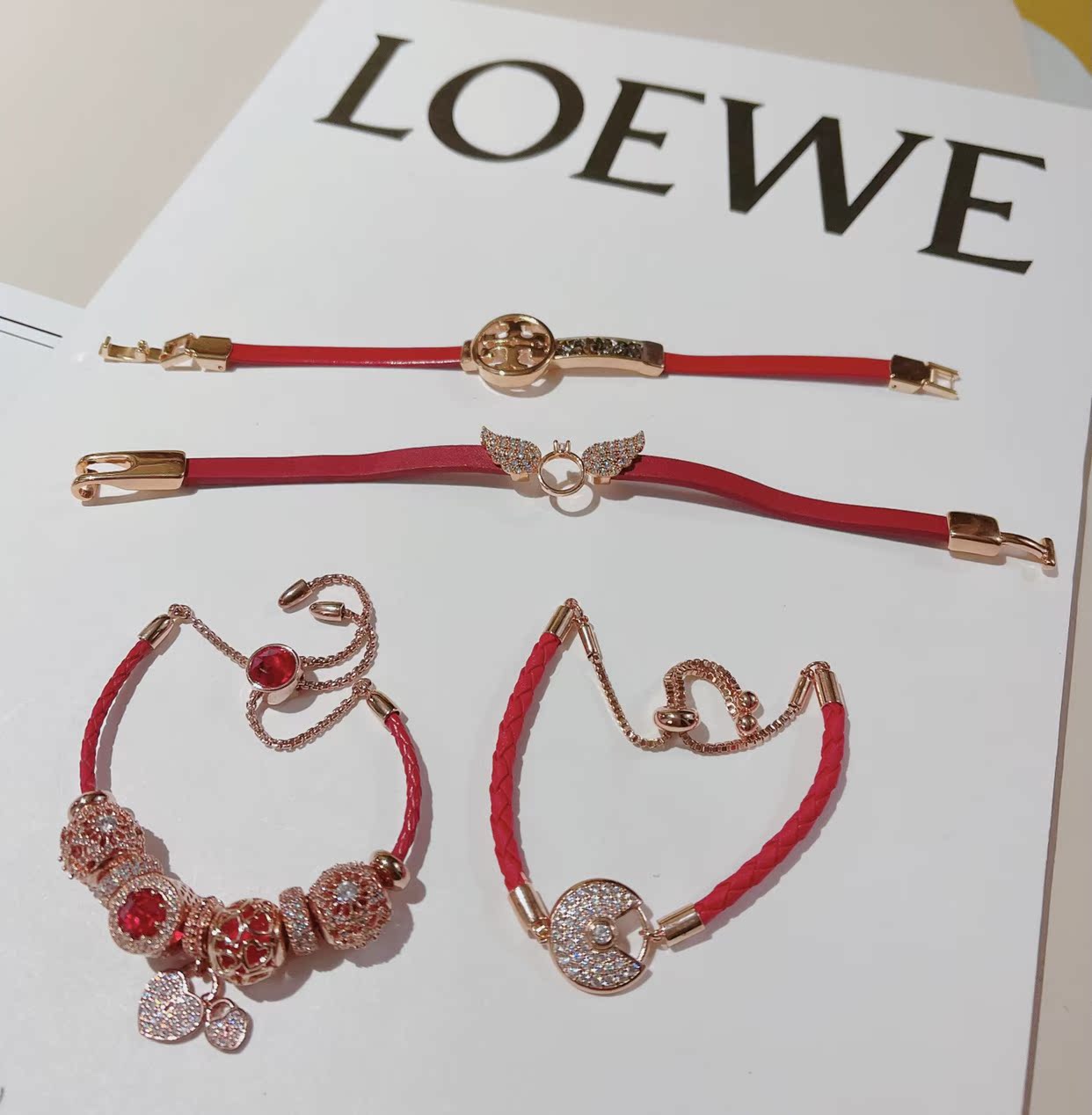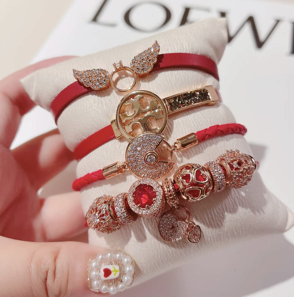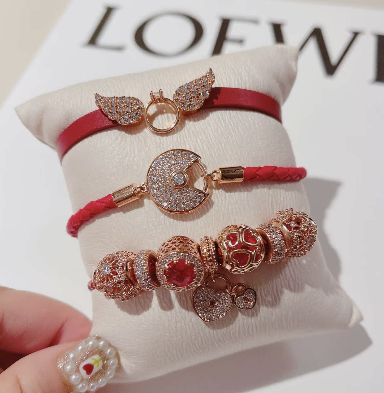 韩国东大门新款代购ins小众设计水钻时尚气质红色皮绳手链女