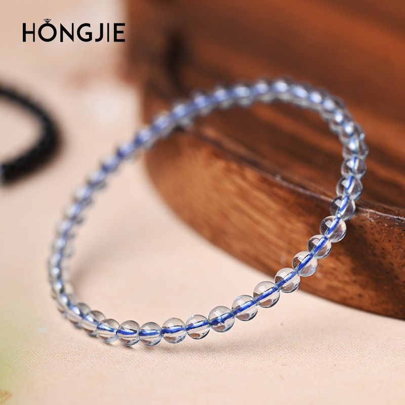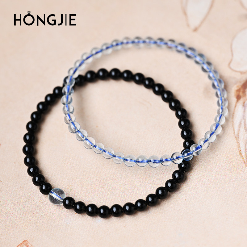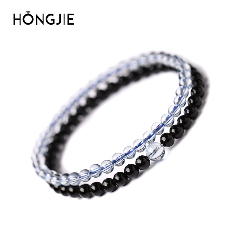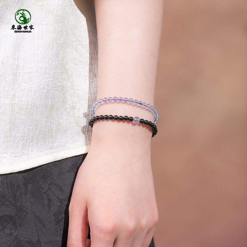 海蓝宝手串黑曜石手链东海玛瑙宝玉石散珠子4mm极细叠戴黑色水晶