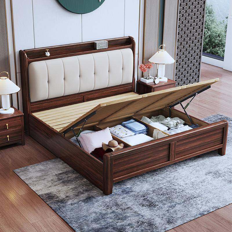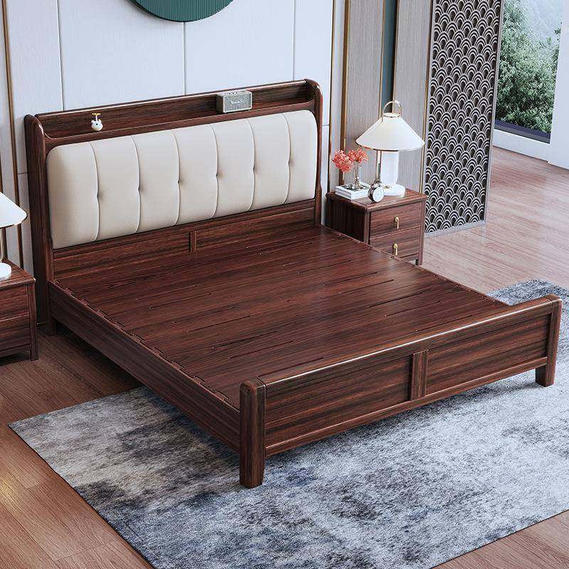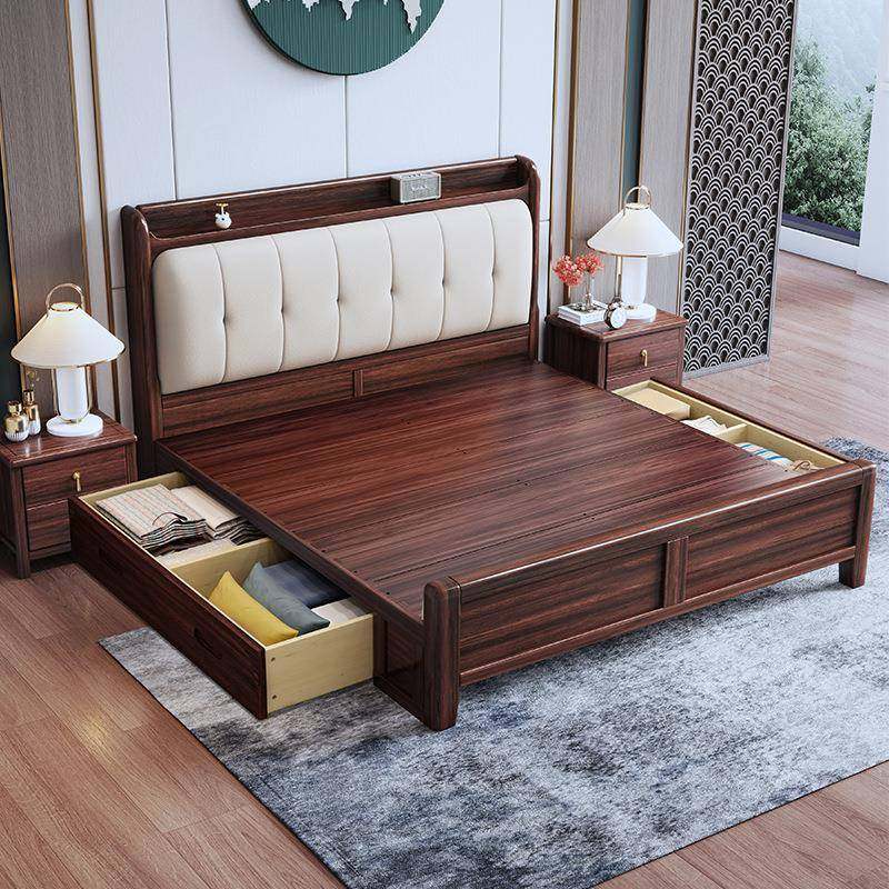 新中式乌金木软靠实木床婚床现代中式卧室1.8米双人储物主卧大床